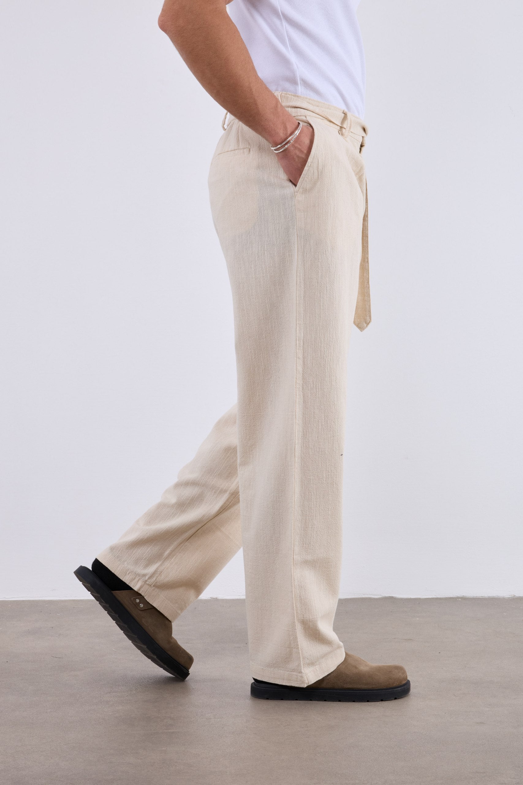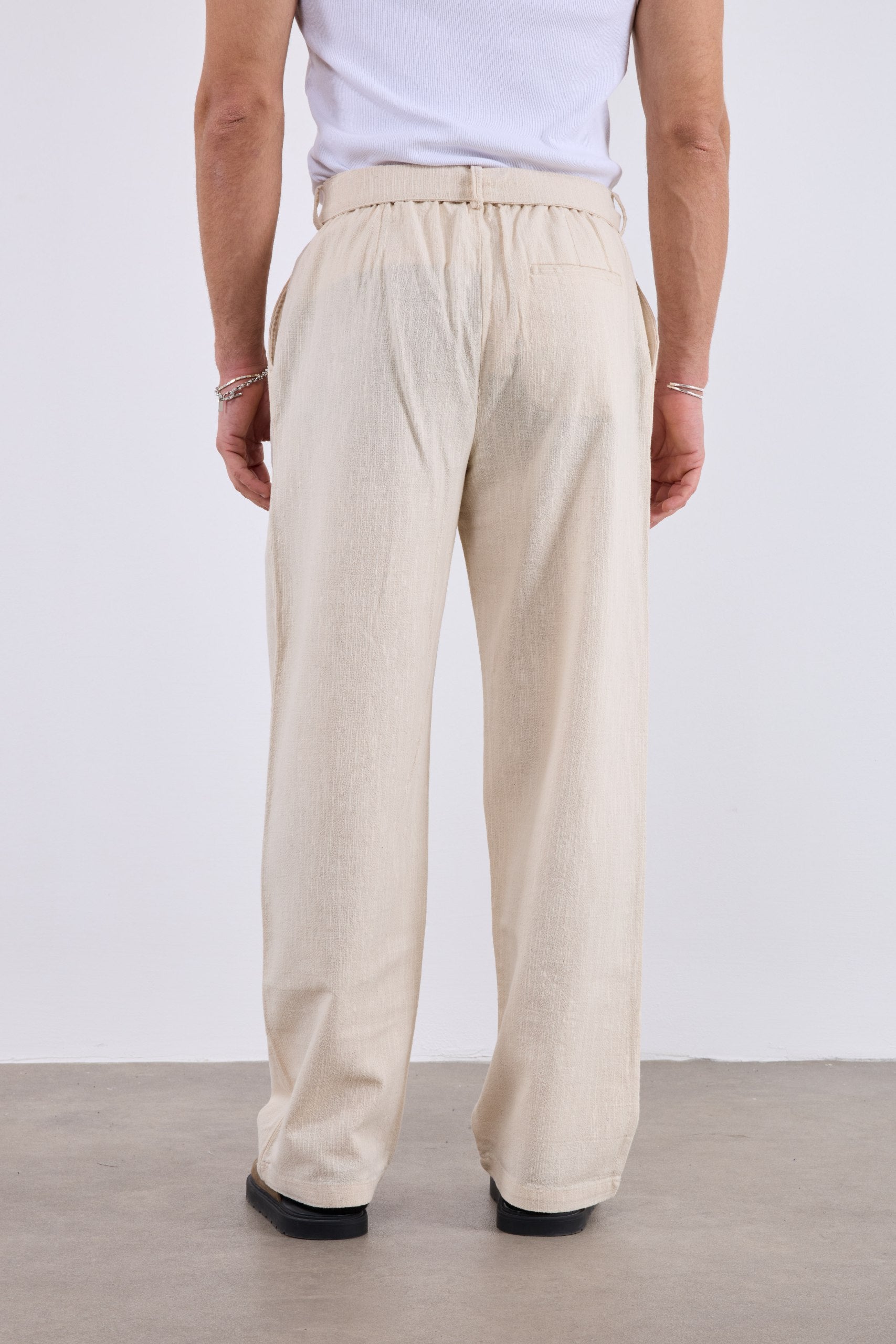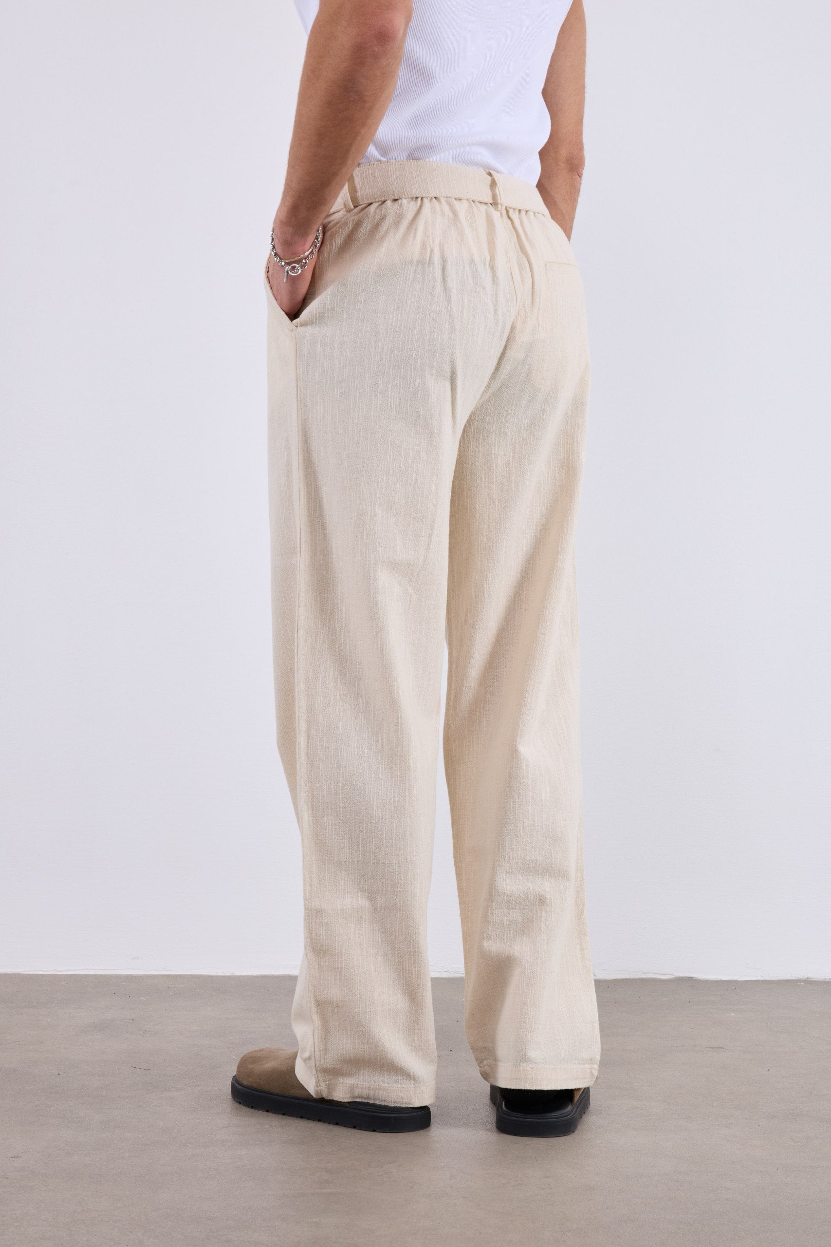 Kemer Kuşak Keten Bej Erkek Pantolon 261010