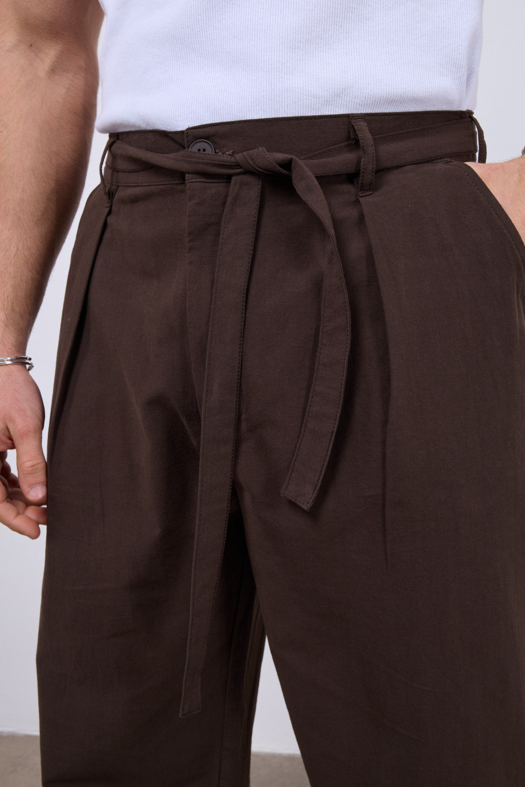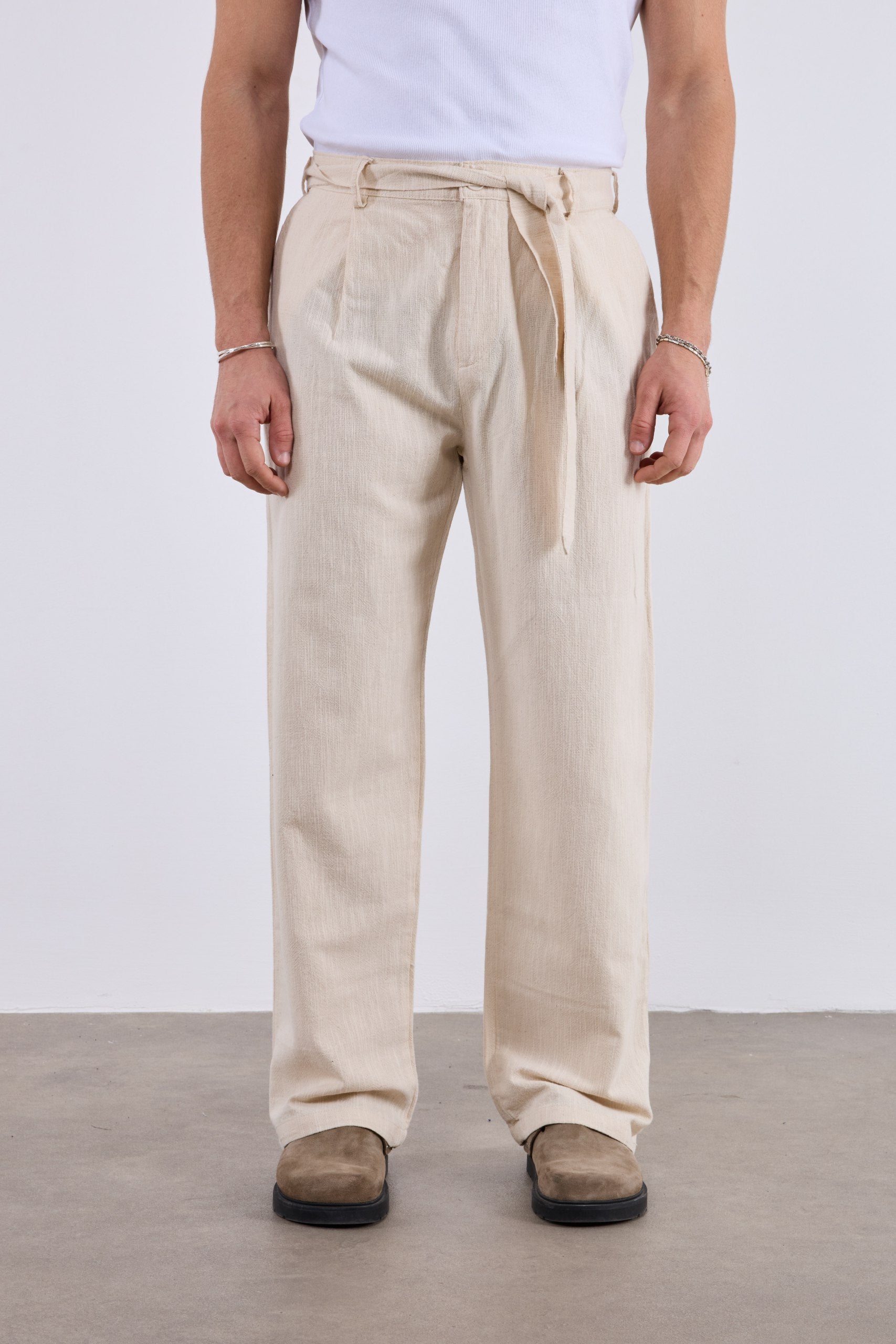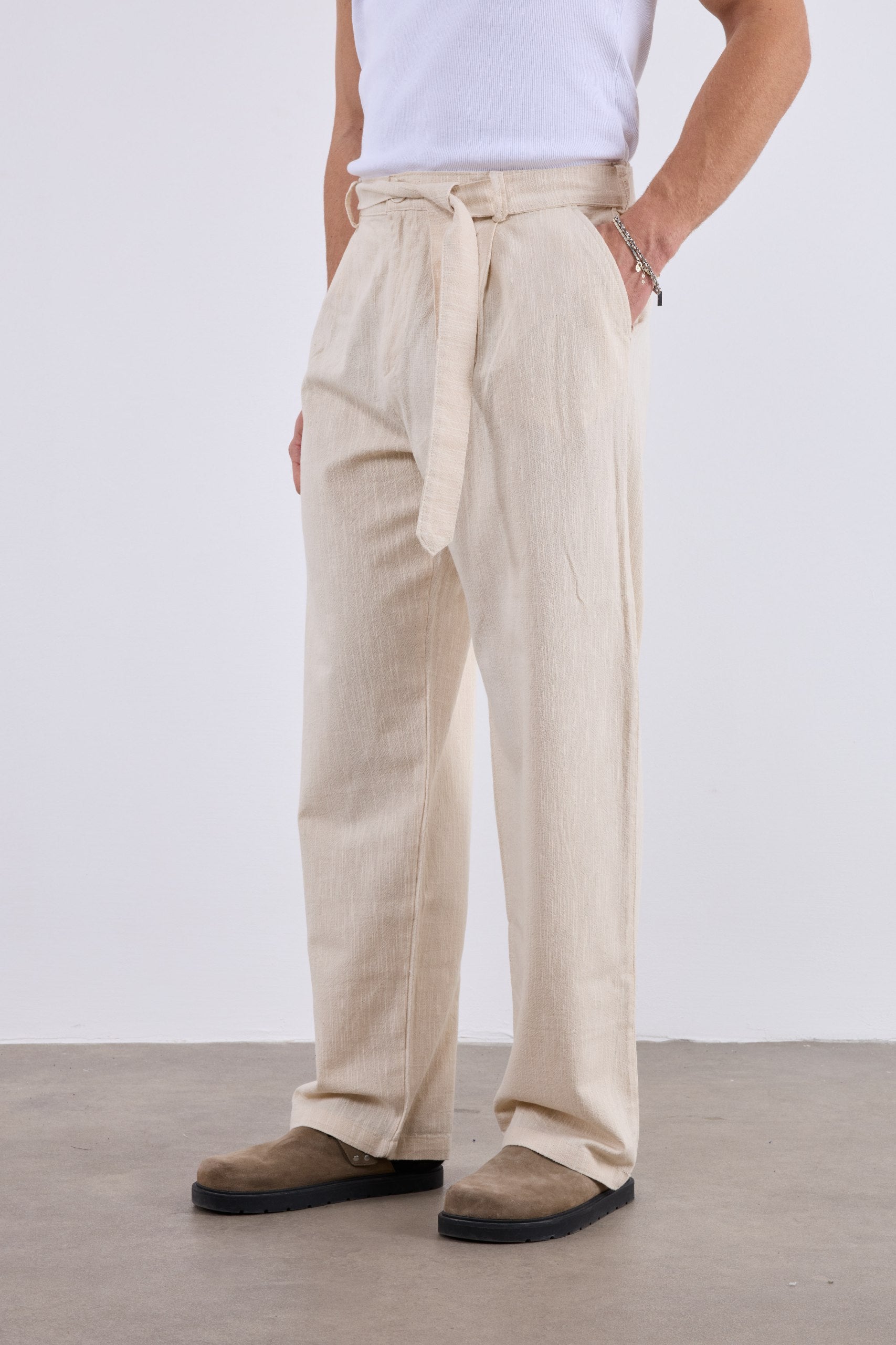 Kemer Kuşak Keten Bej Erkek Pantolon 261010