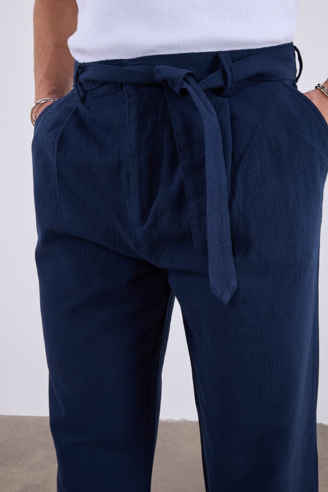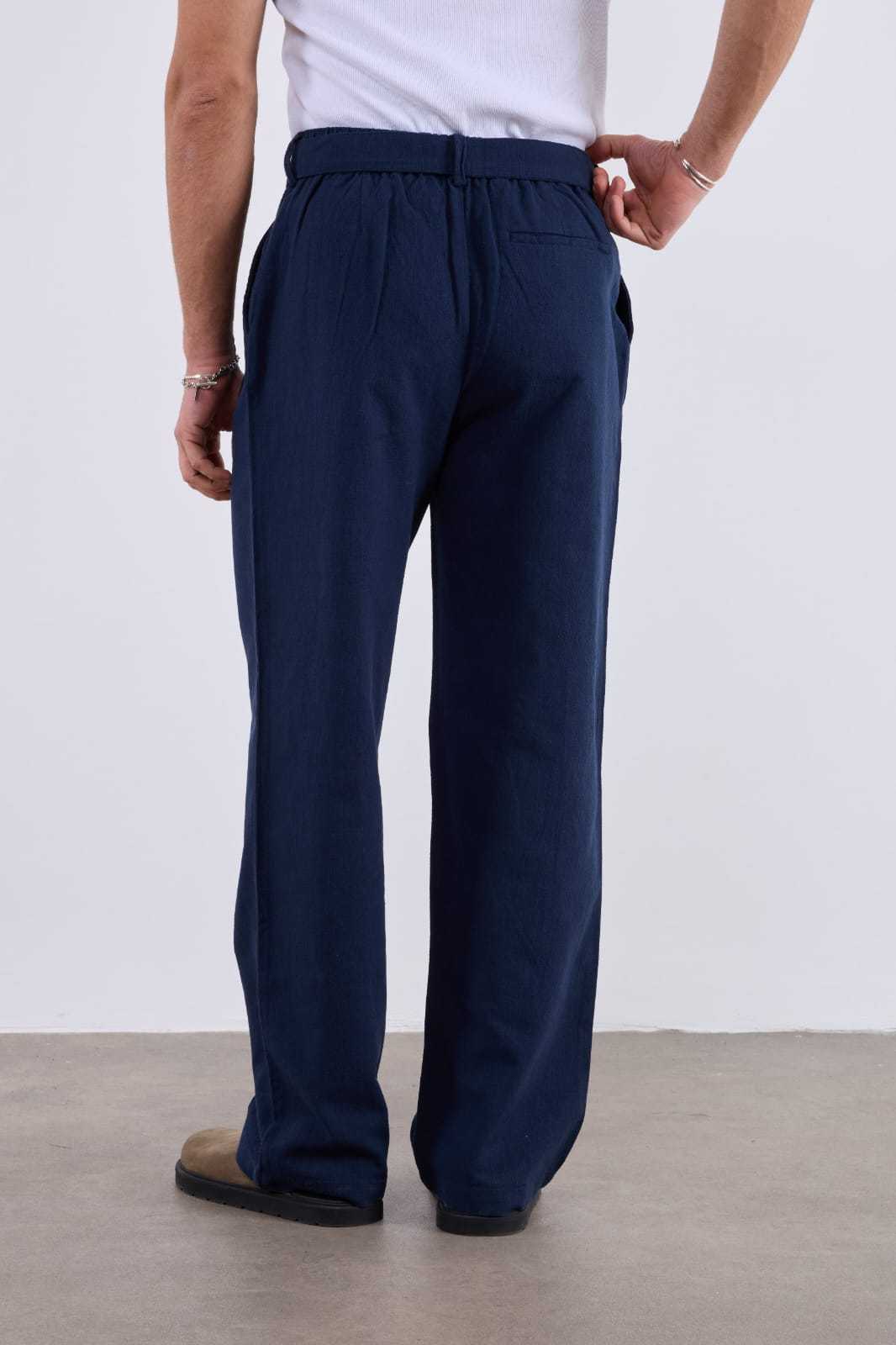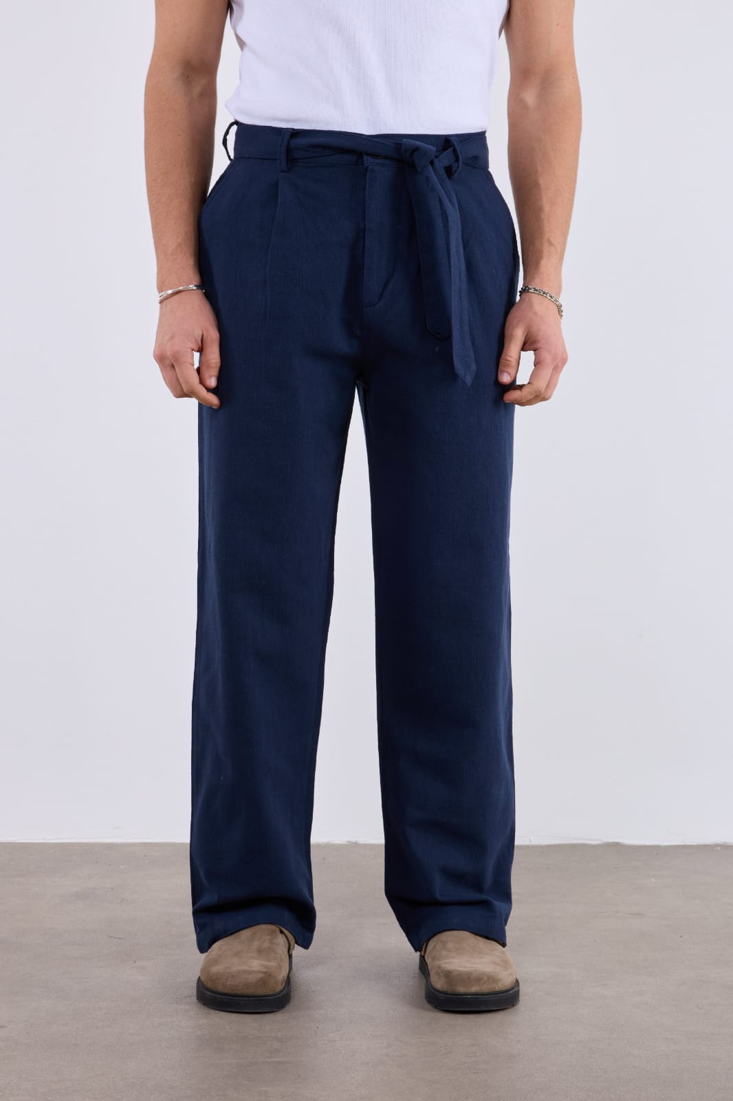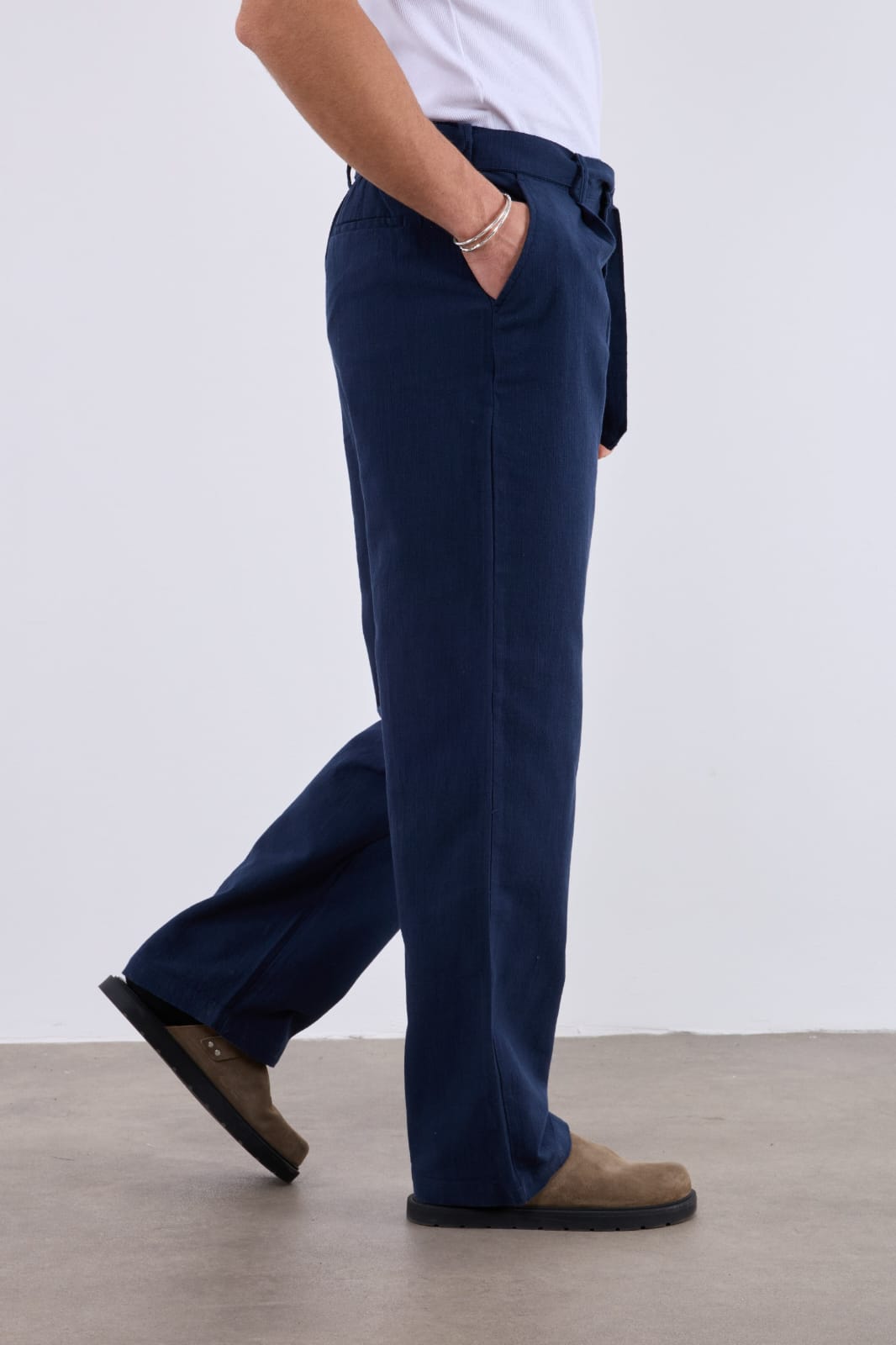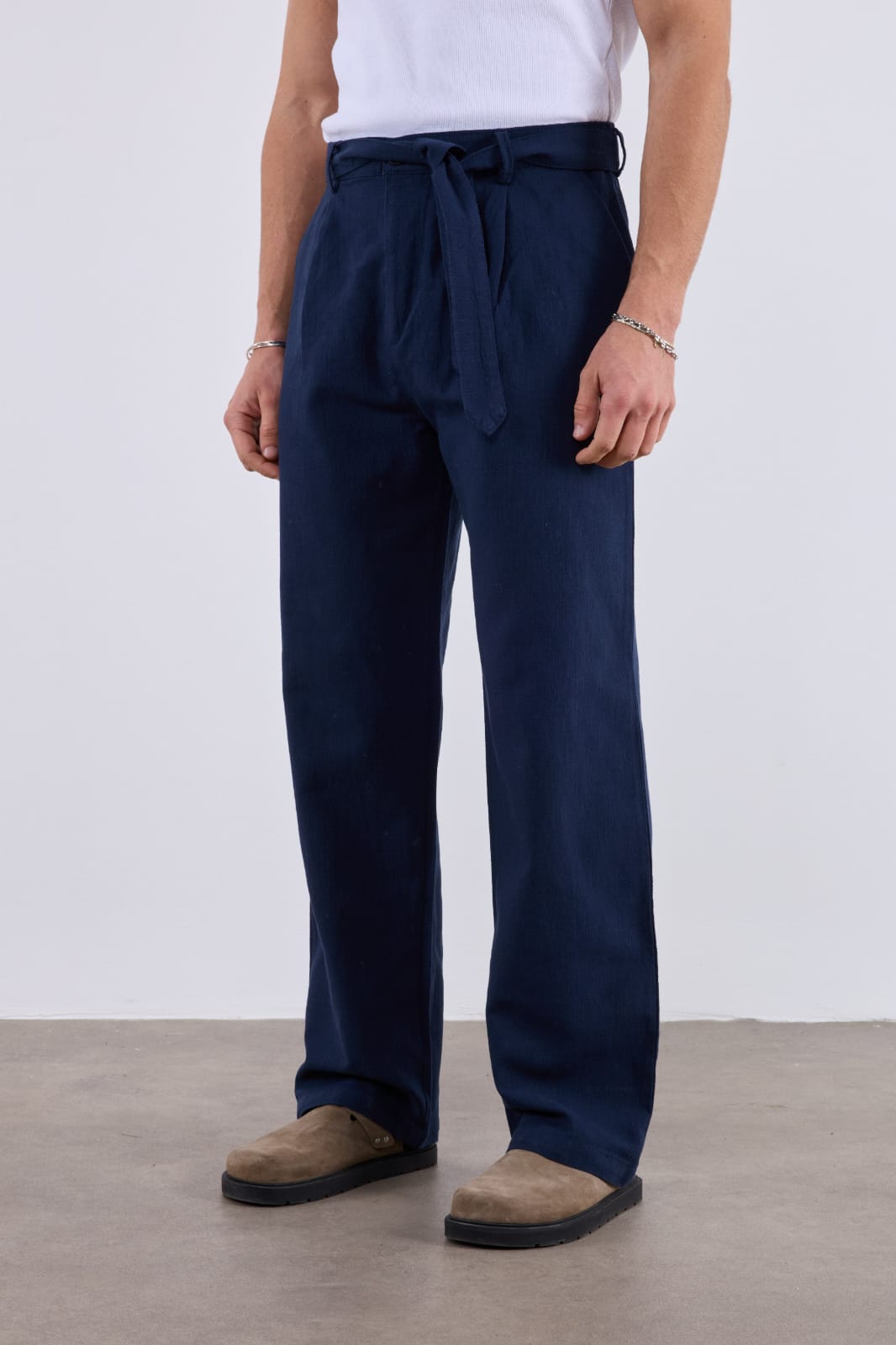 Kemer Kuşak Keten Lacivert Erkek Pantolon 261010