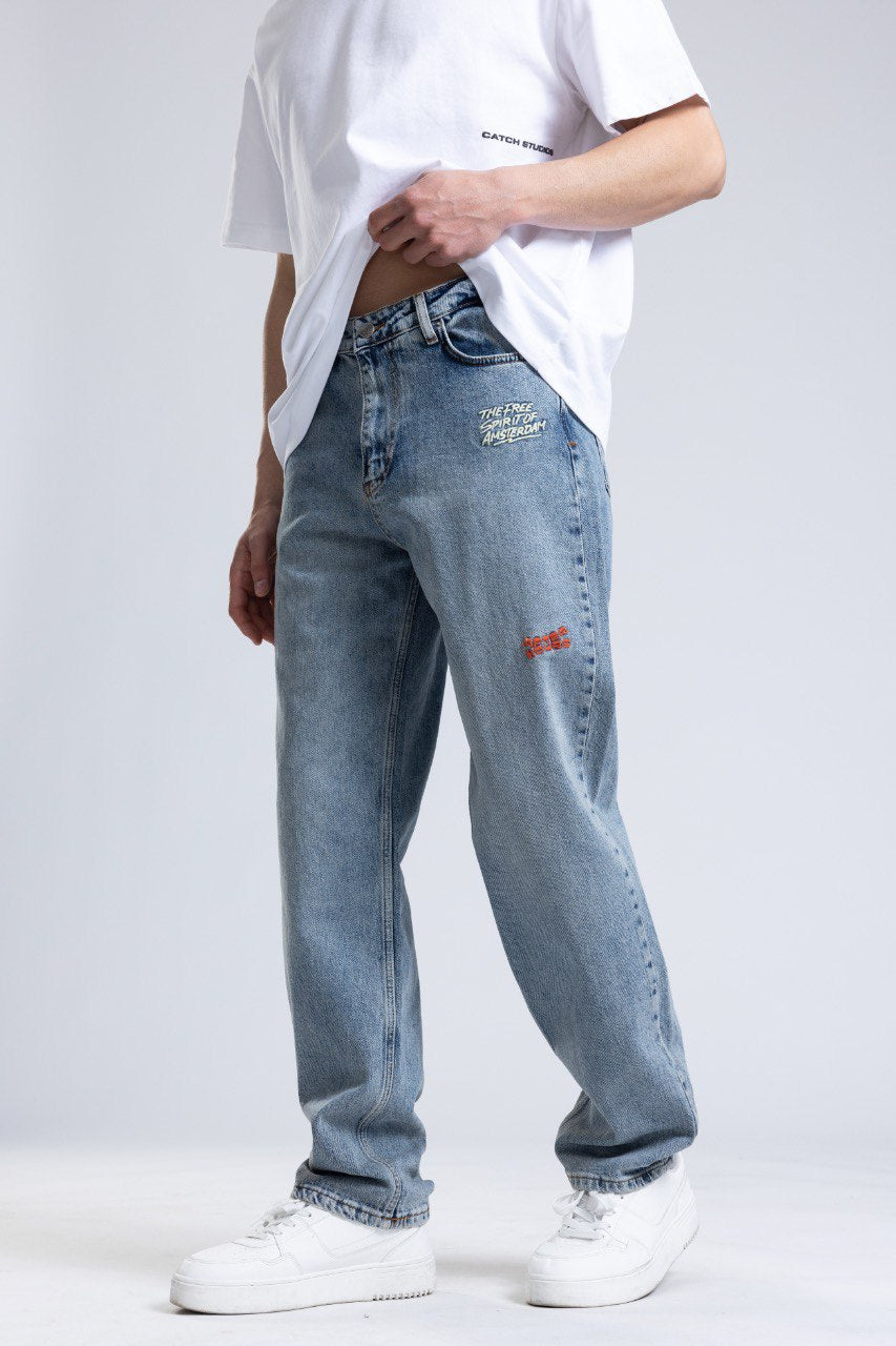 Nakışlı Erkek Baggy Mavi Kot Pantolon 6379