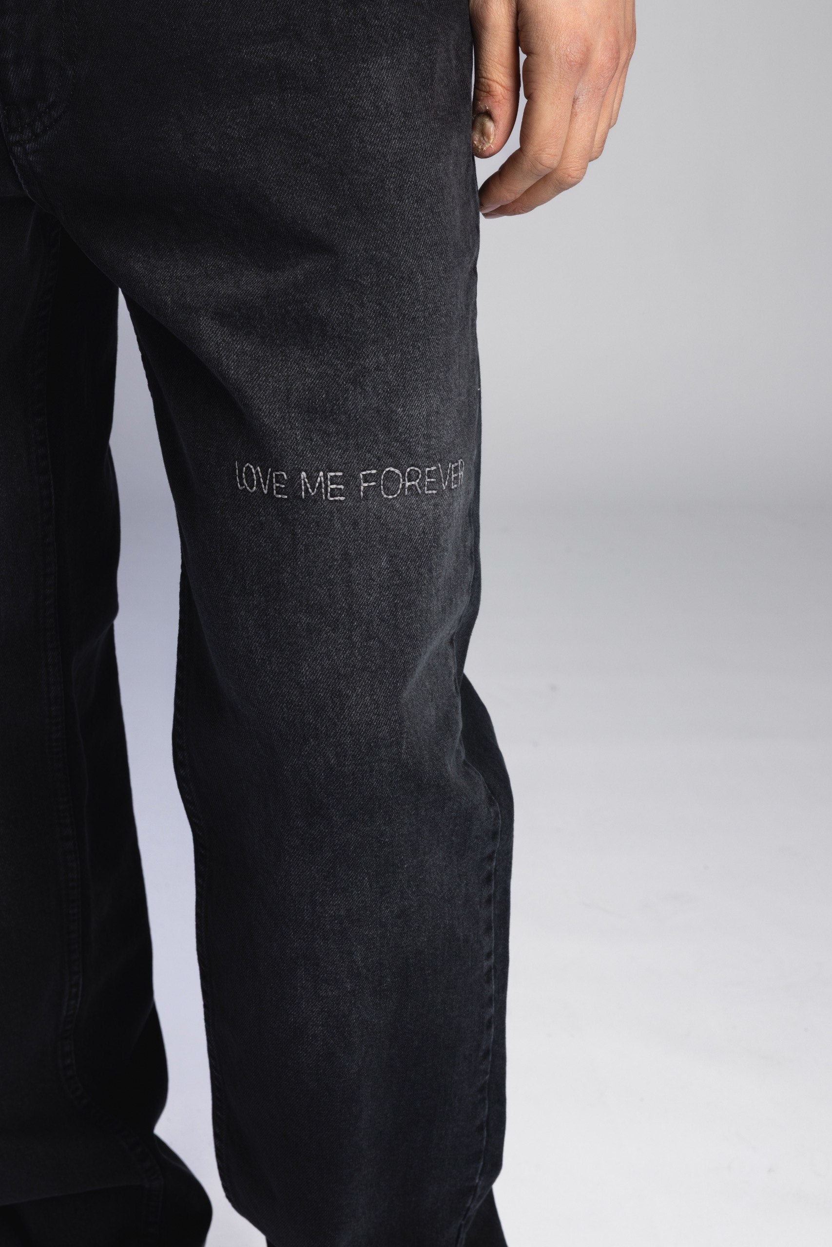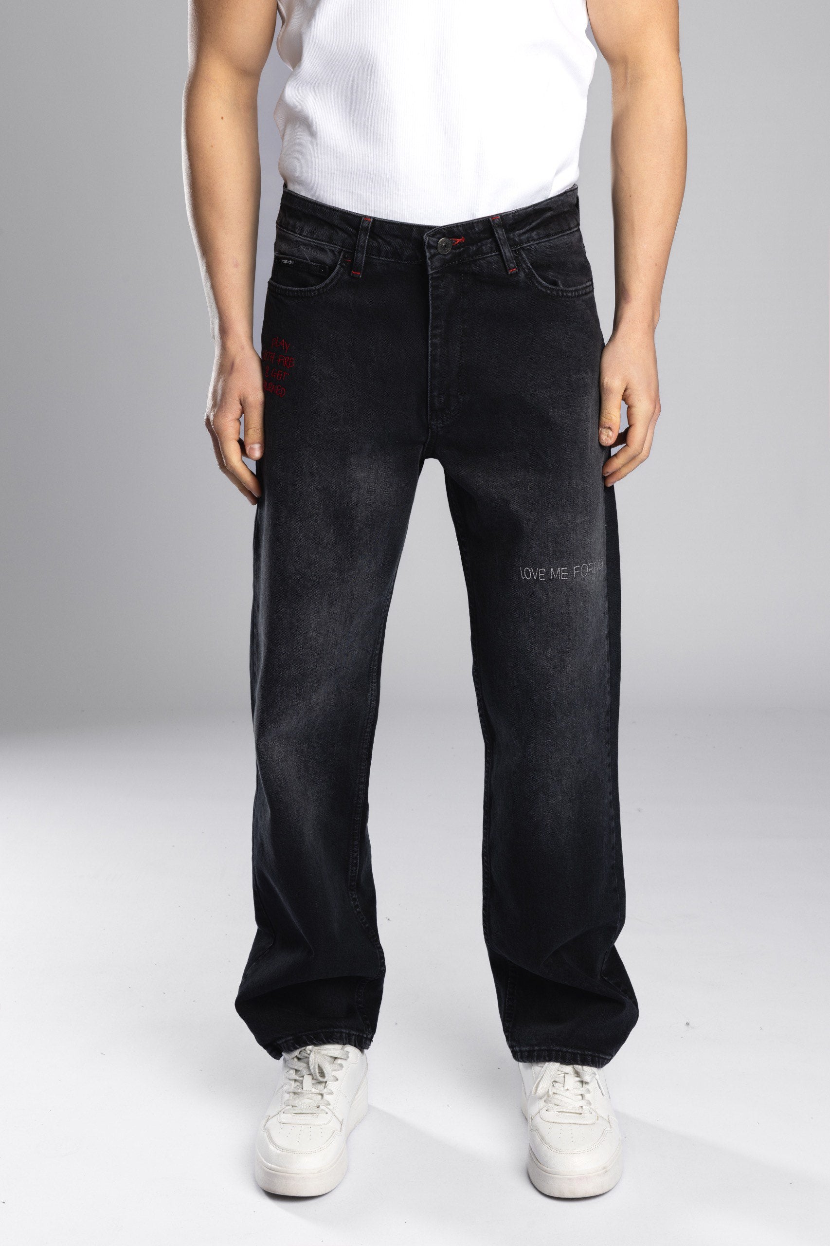 Nakışlı Erkek Baggy Siyah Kot Pantolon 6553