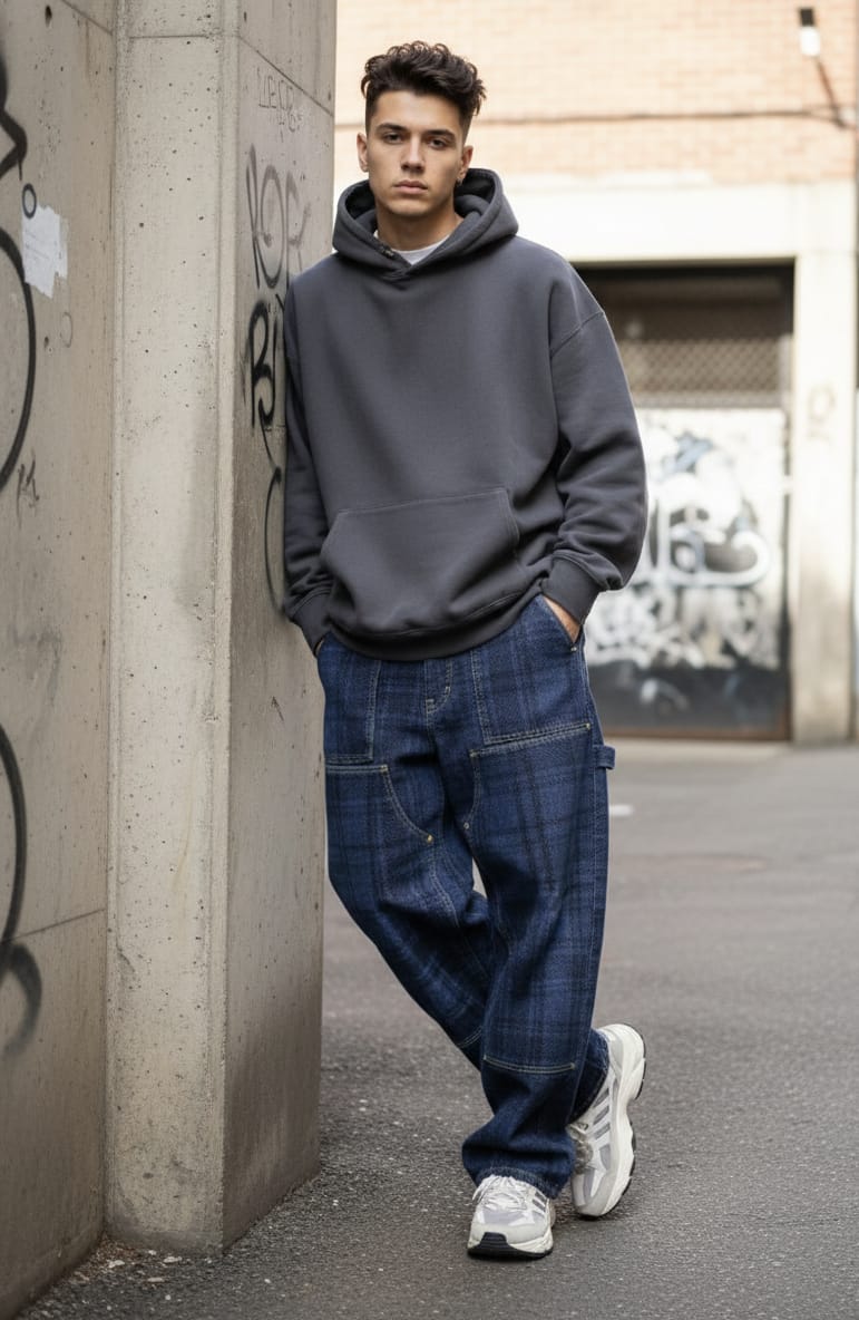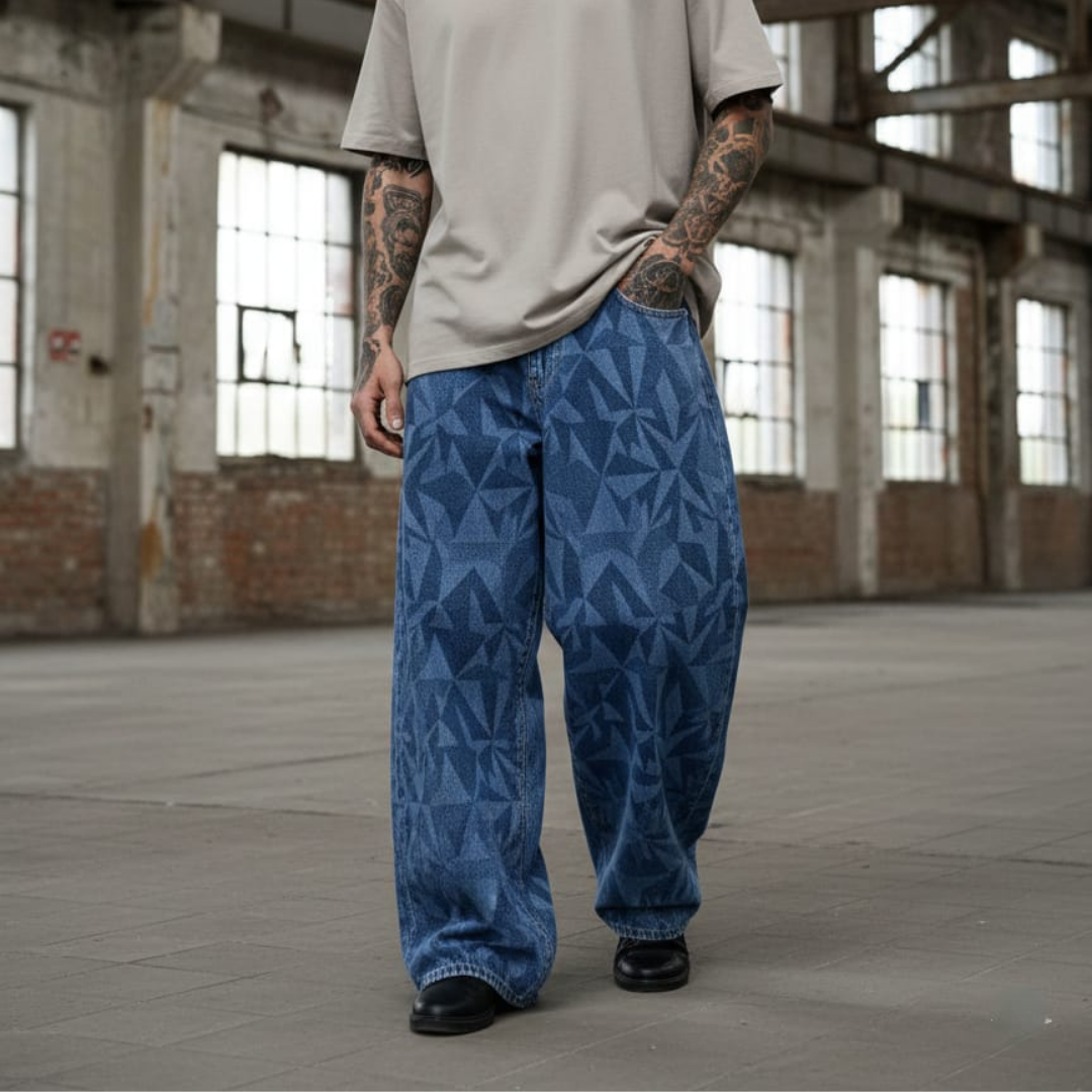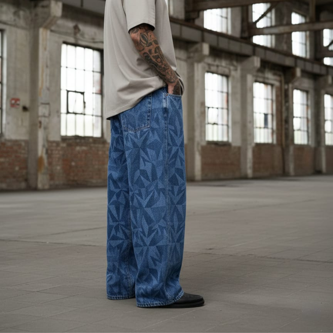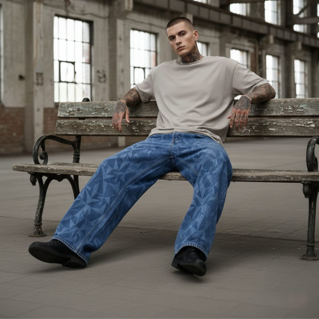 Desenli Erkek Süper Baggy Kot Pantolon 16965
