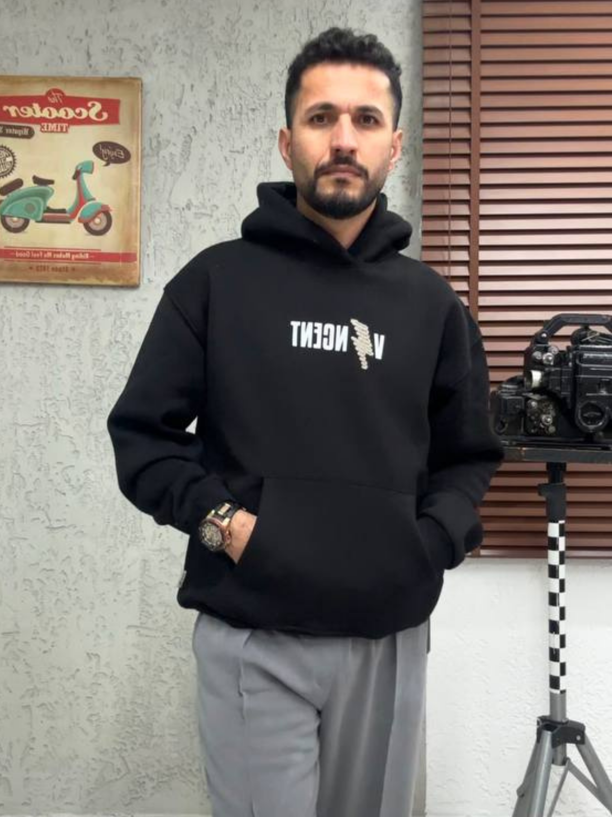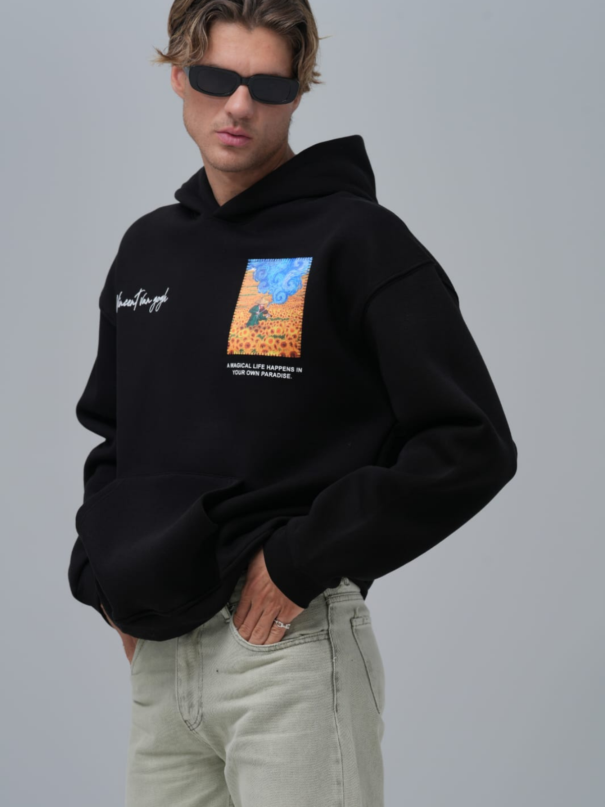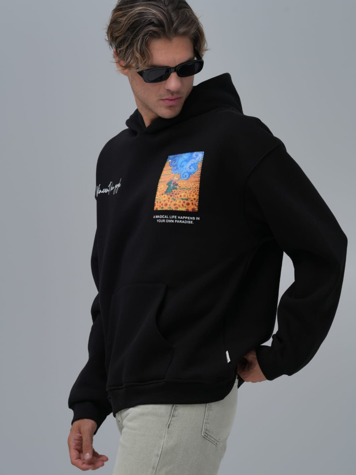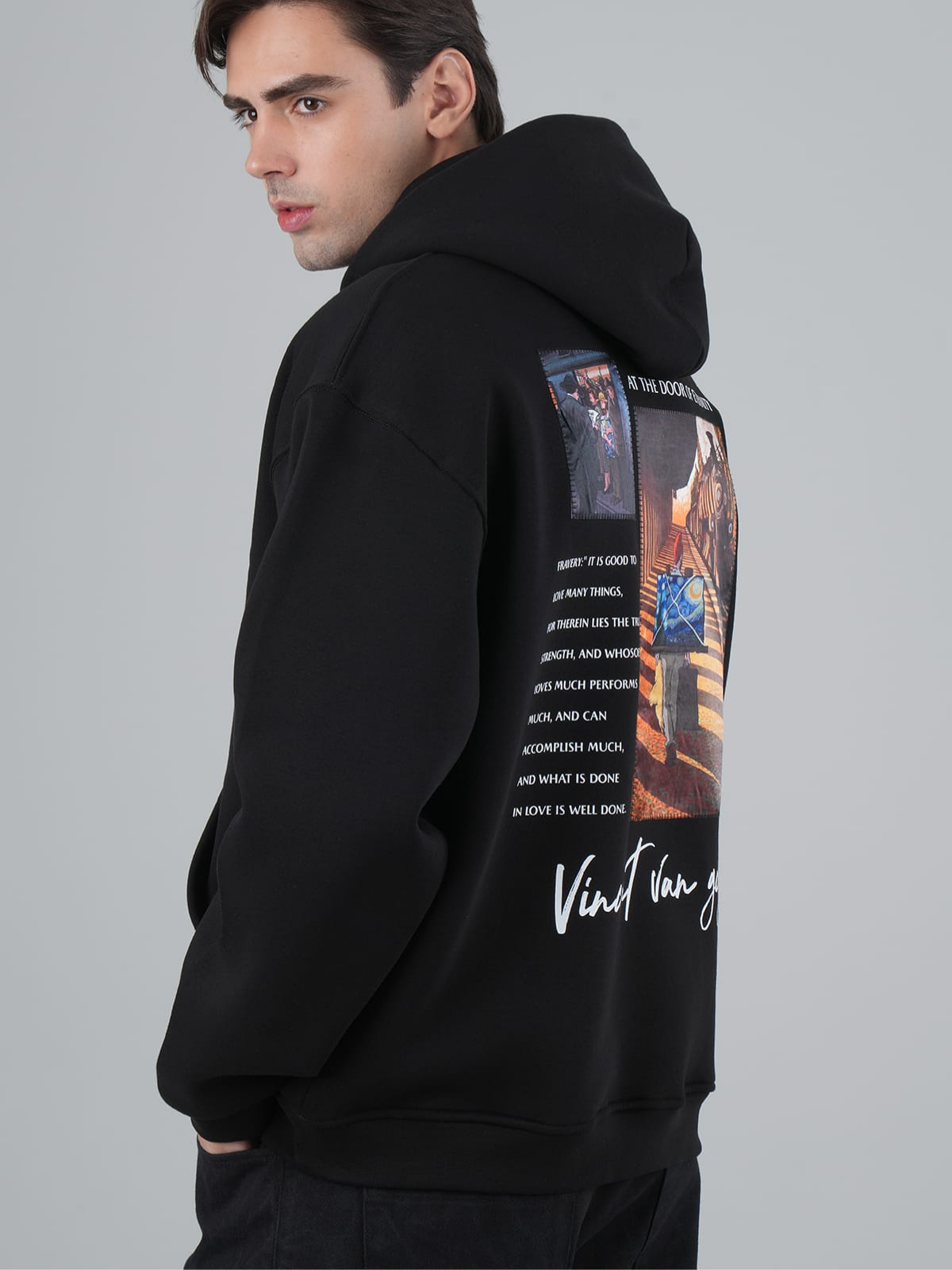 Sandal Baskılı Vincent Oversize Siyah Sweatshirt 4964