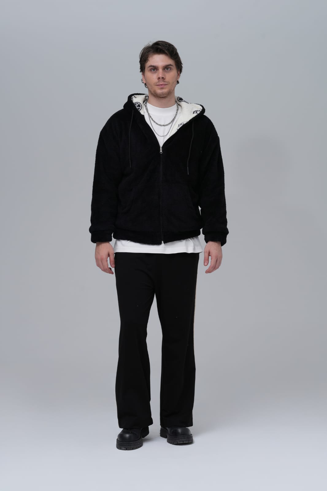 Tren Baskılı Oversize Siyah Sweatshirt 5003
