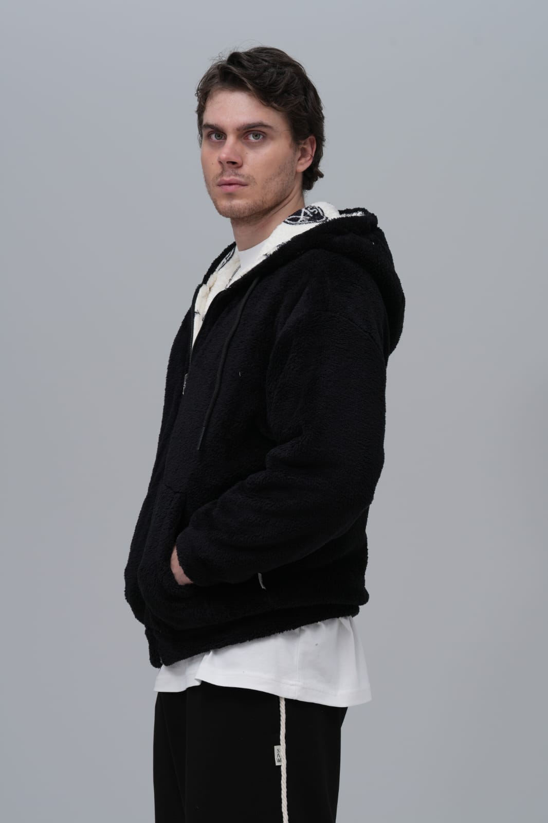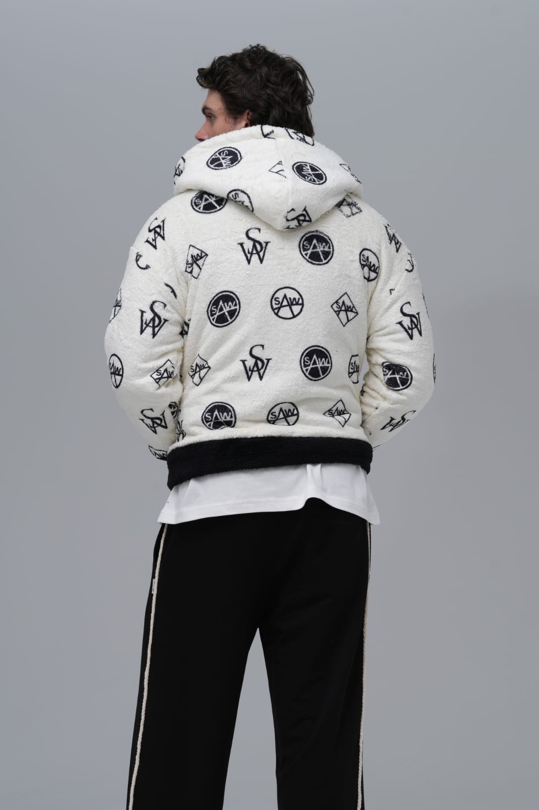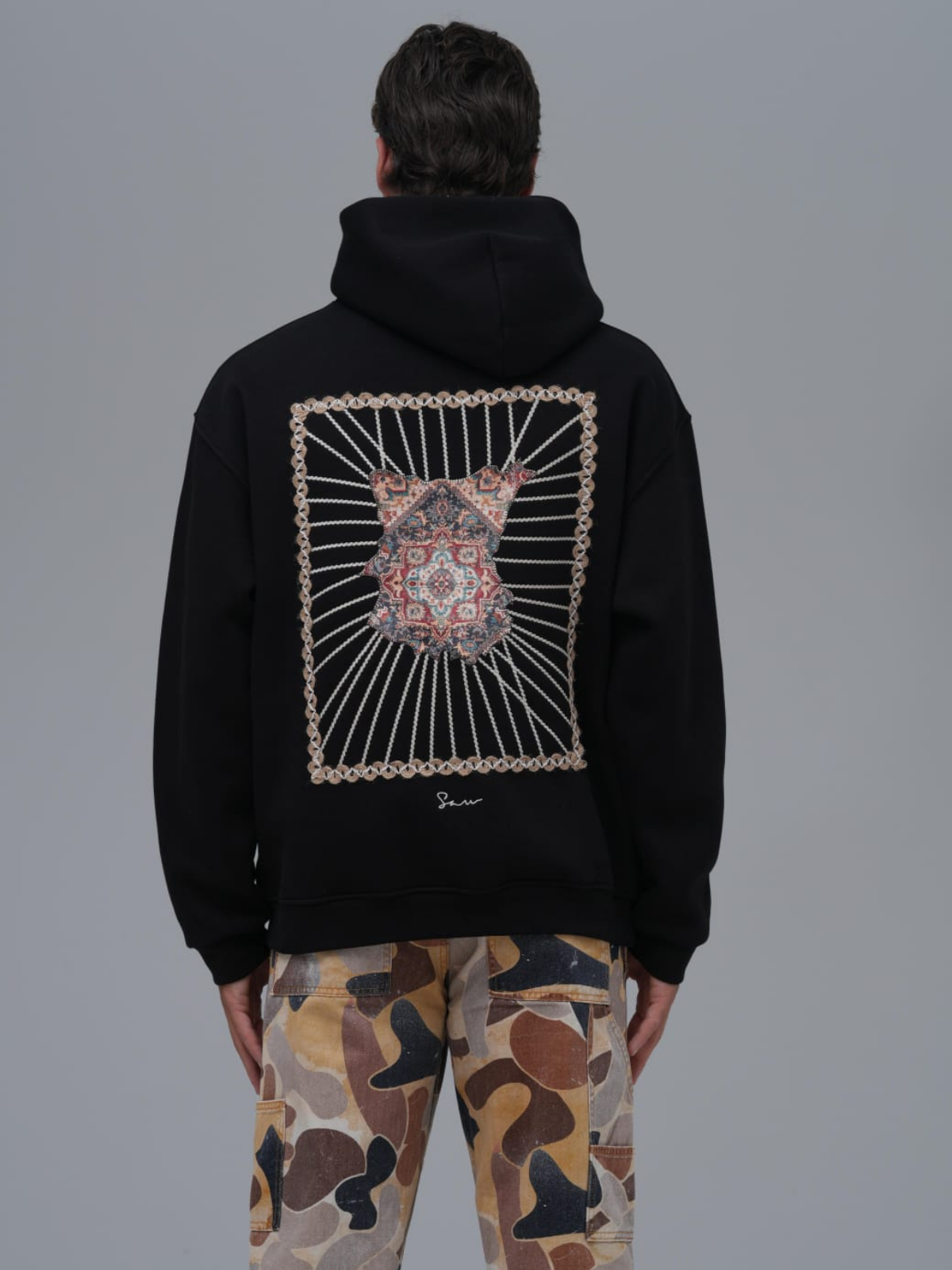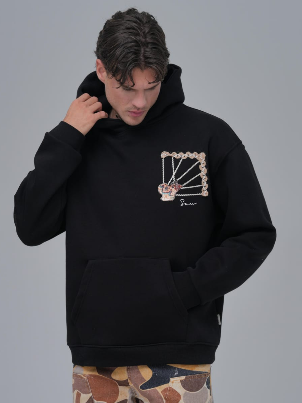 Halı Aplikeli Oversize Siyah Sweatshirt 4959
