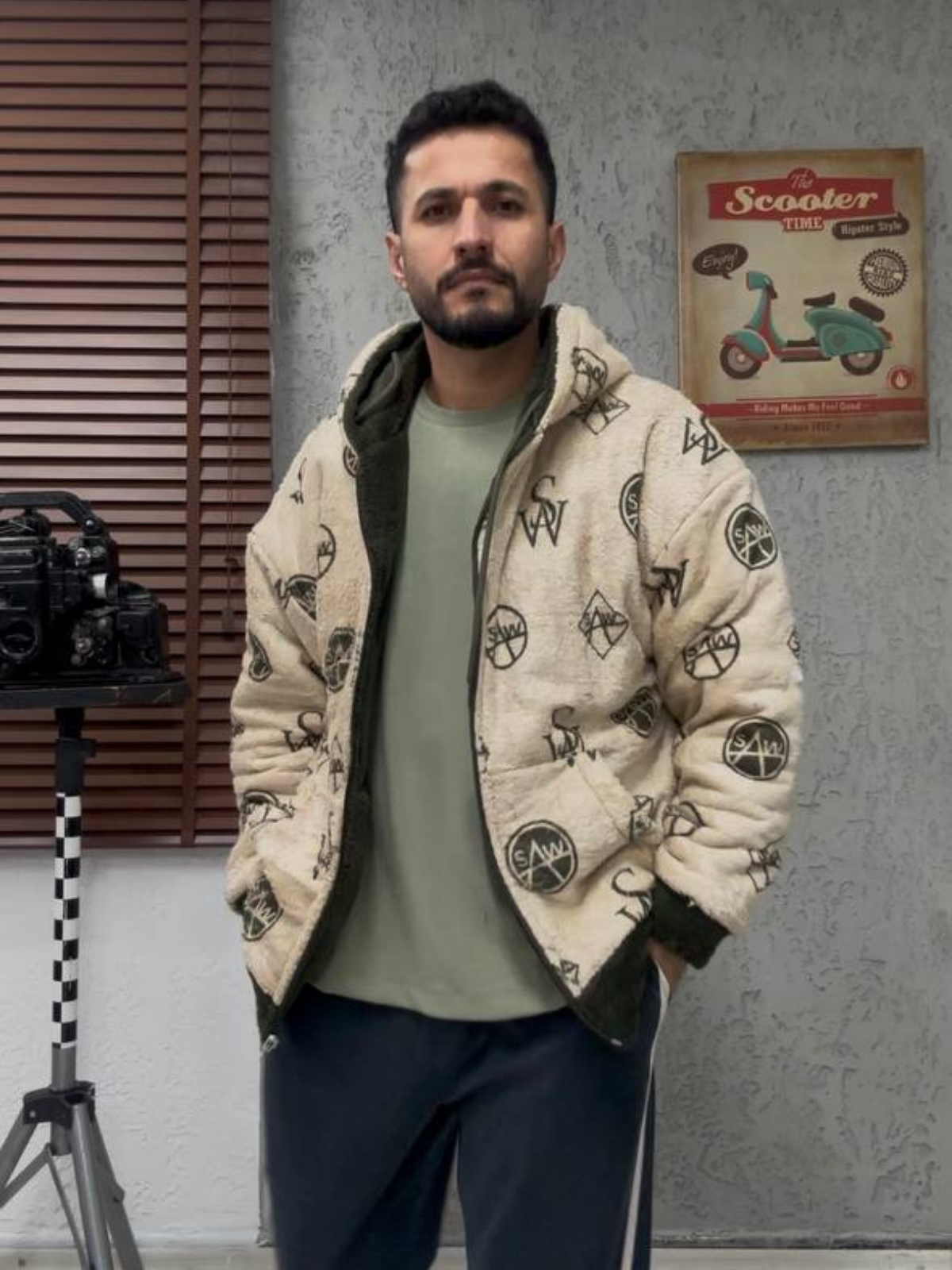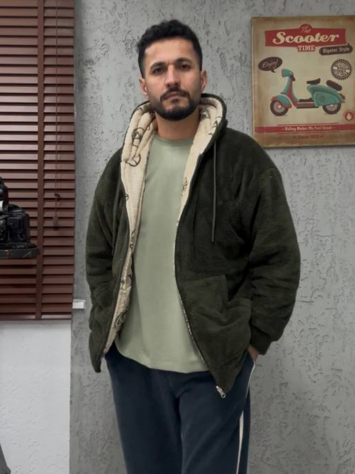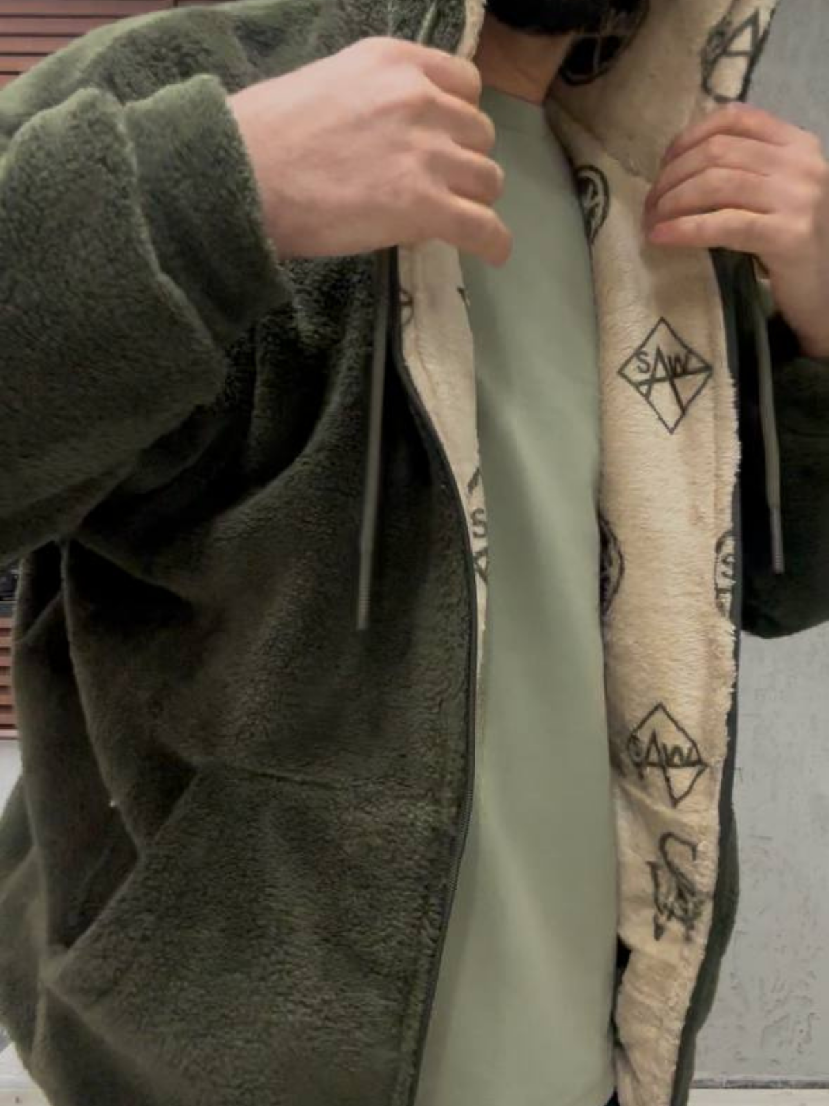 Çift Taraflı Welsoft Peluş Kapşonlu Haki Mont 4950