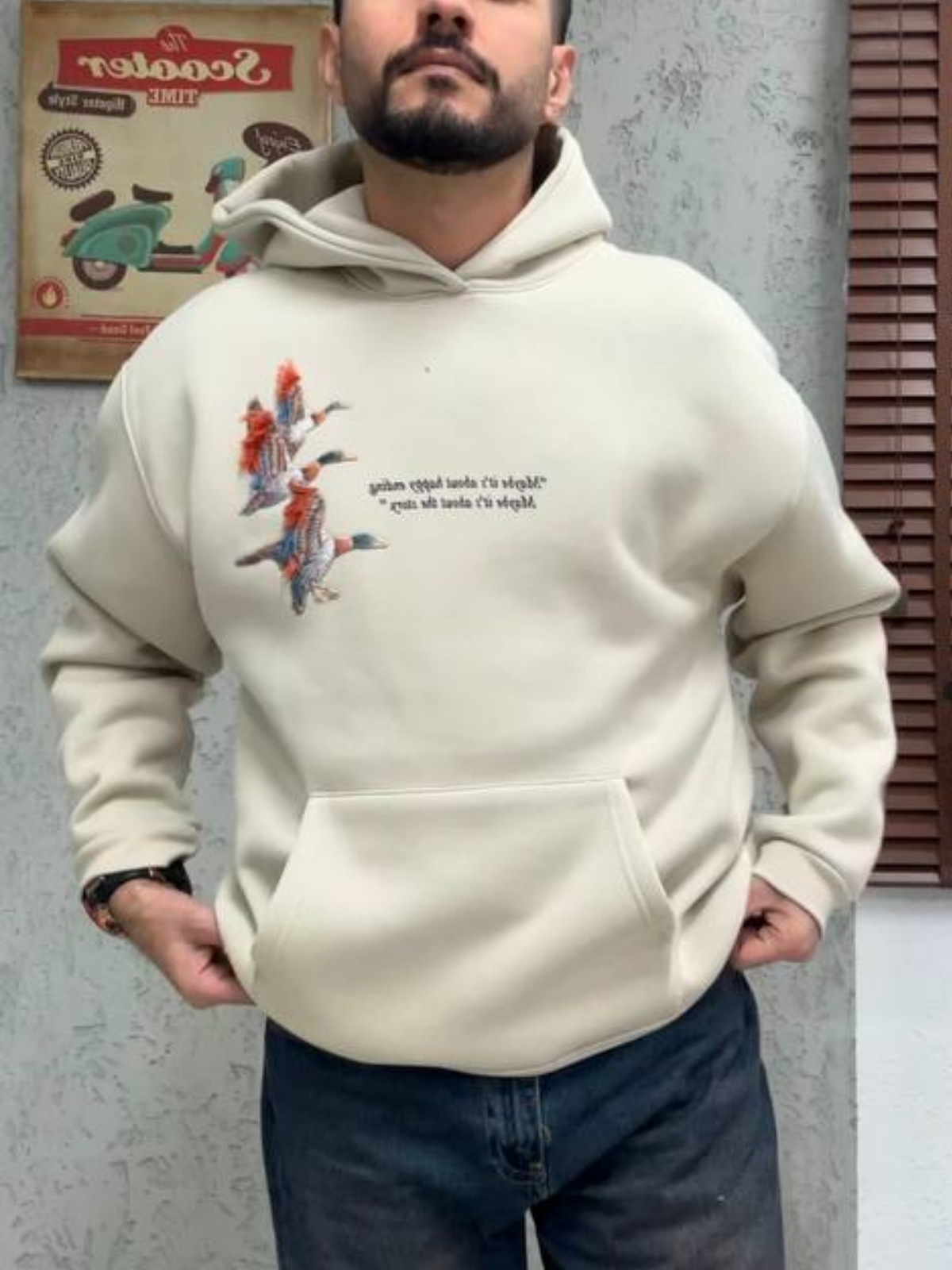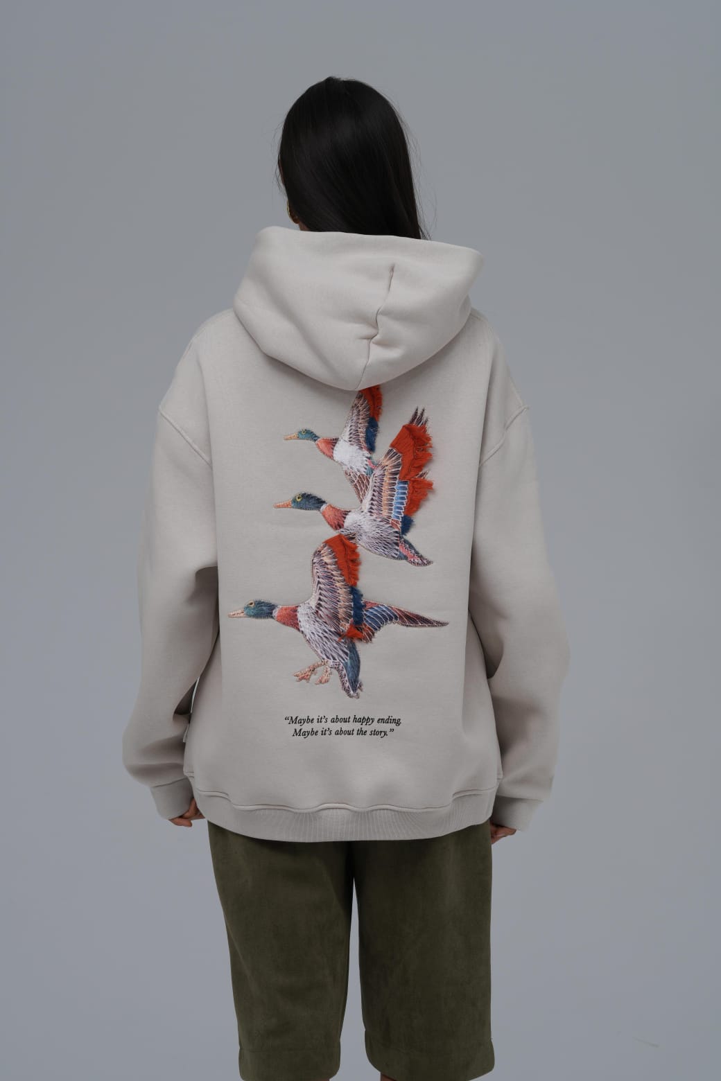 Püsküllü Kaz Aplike Oversize Taş Sweatshirt 4996