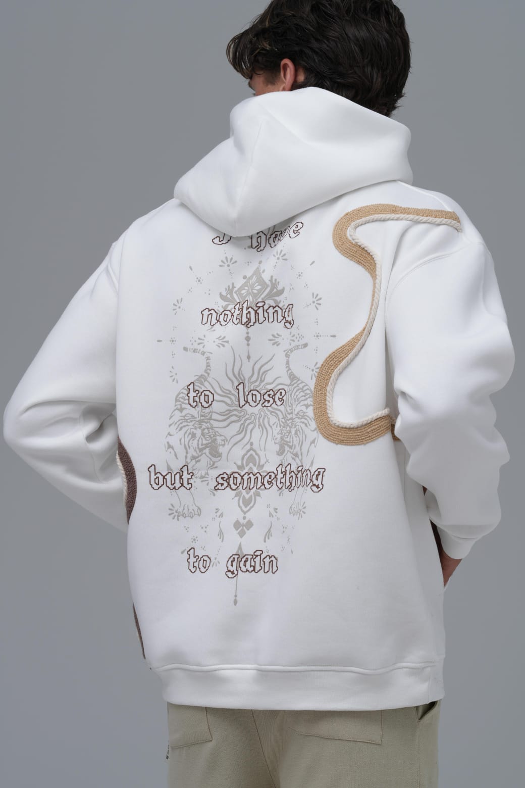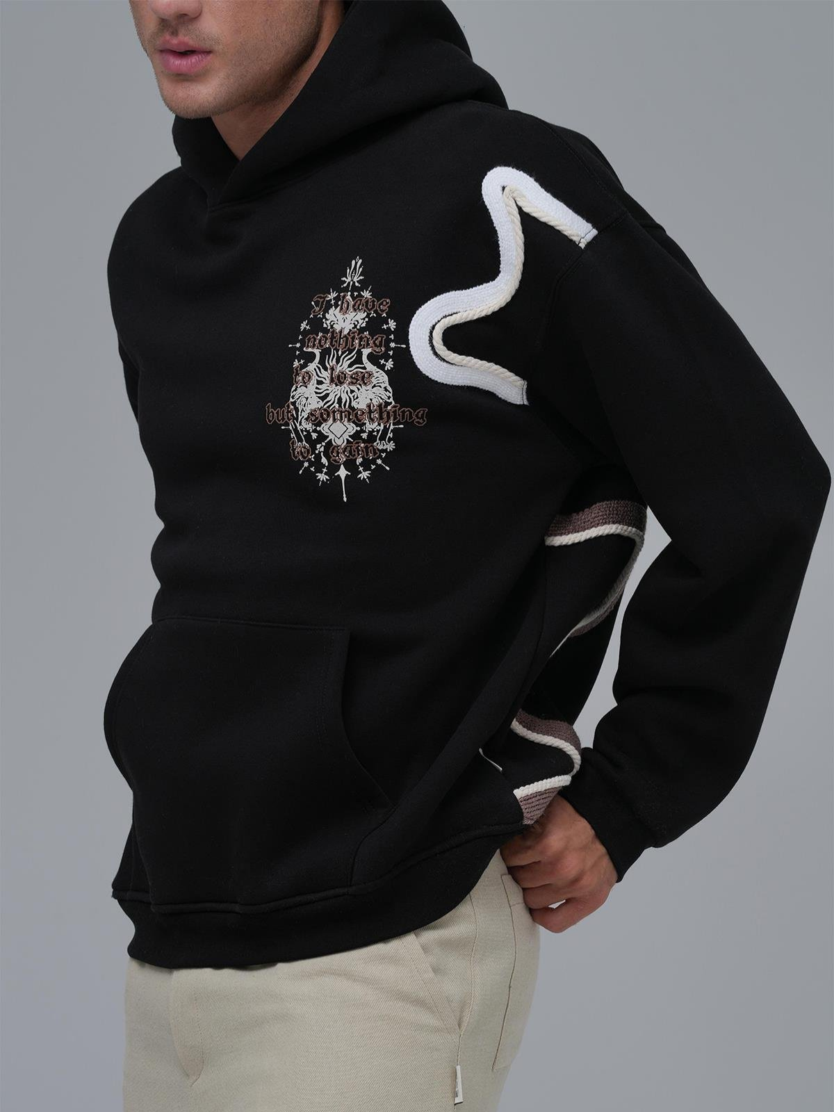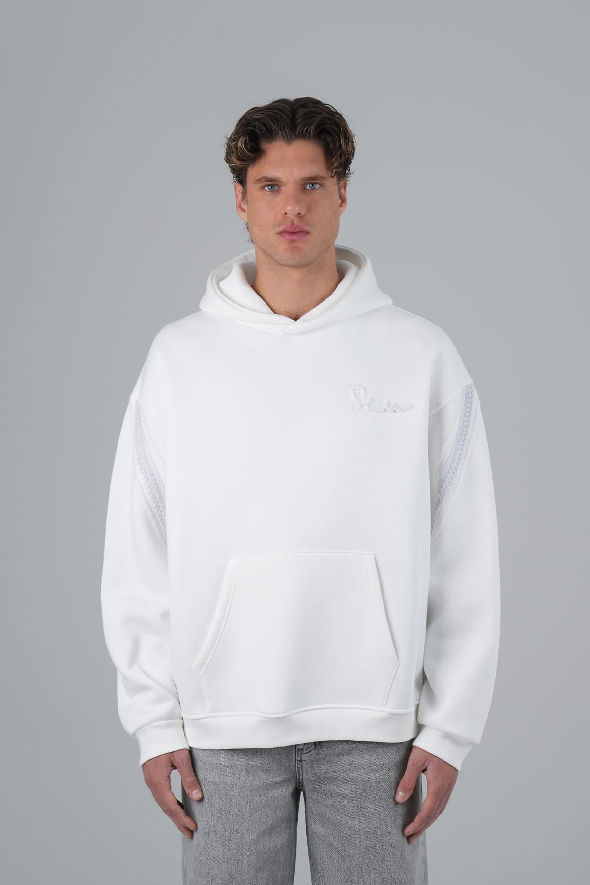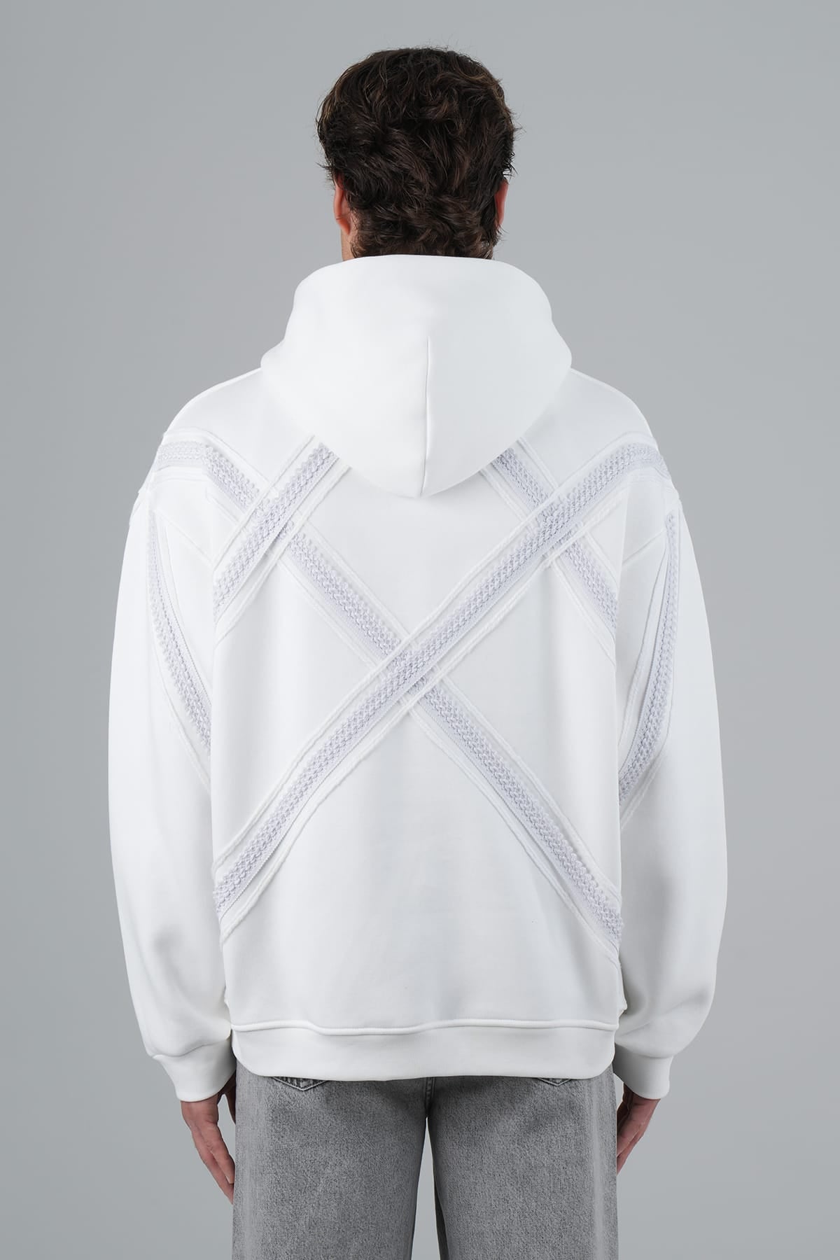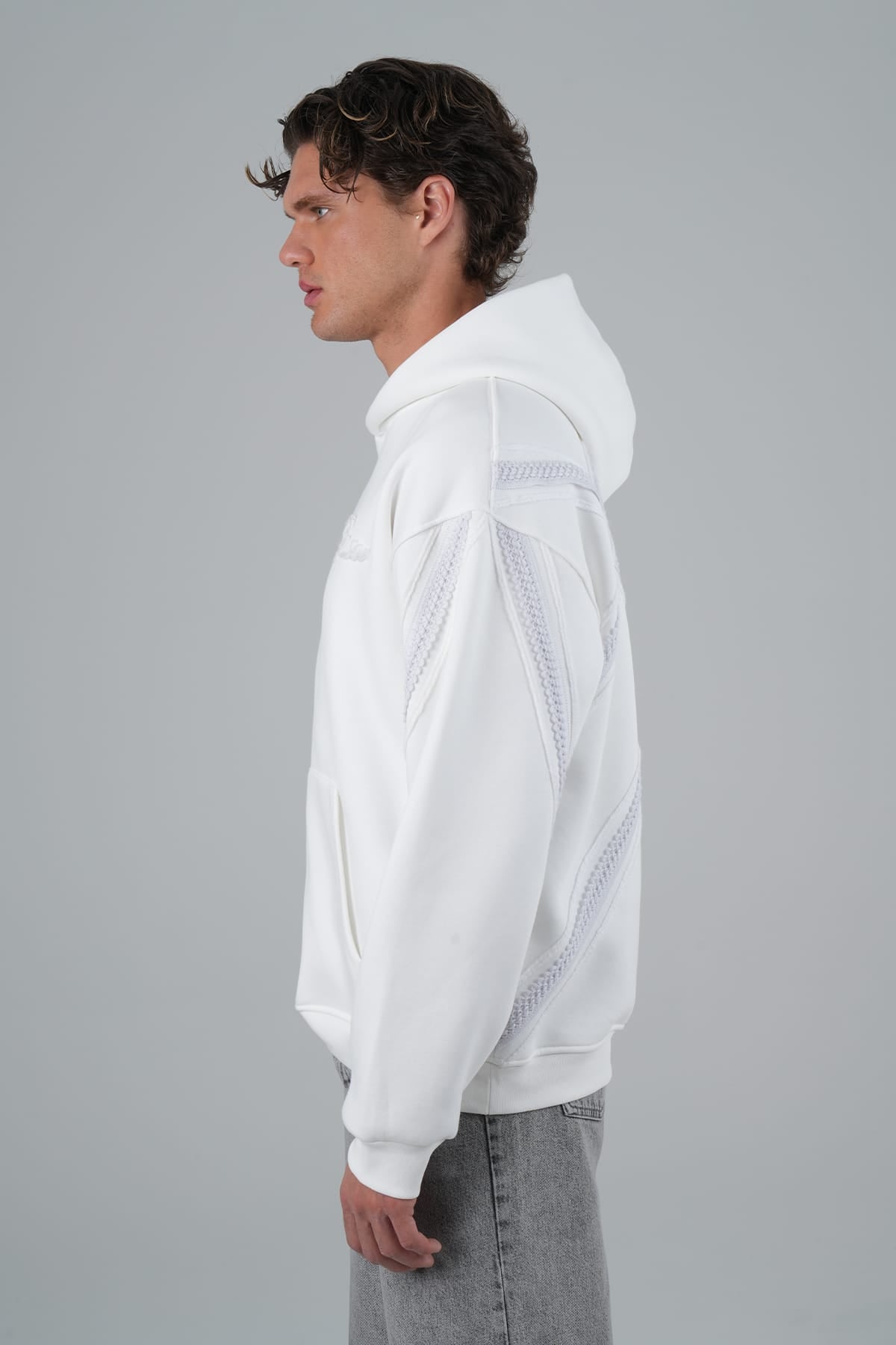 Yün İpli Aplikeli Oversize Ekru Sweatshirt 5002