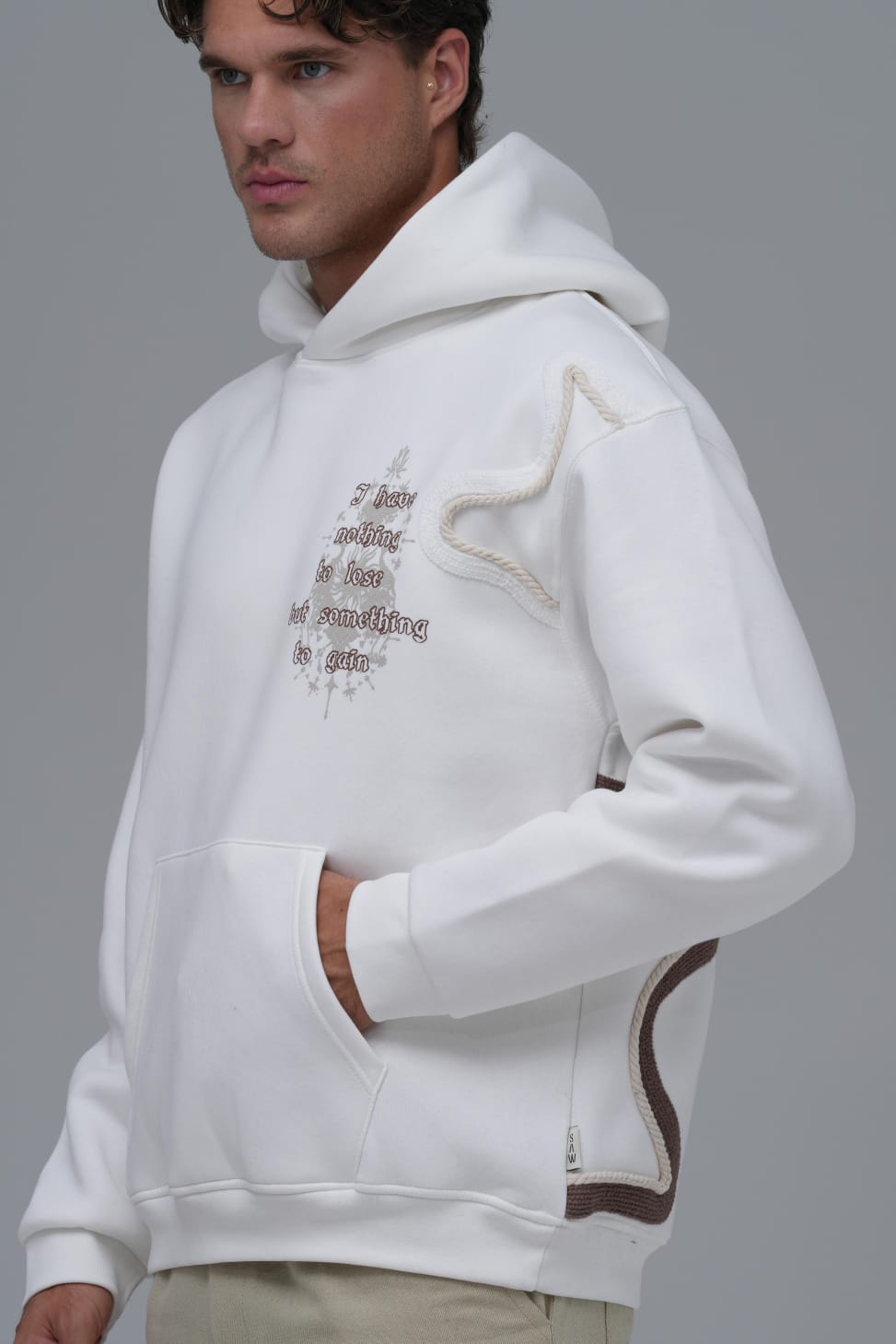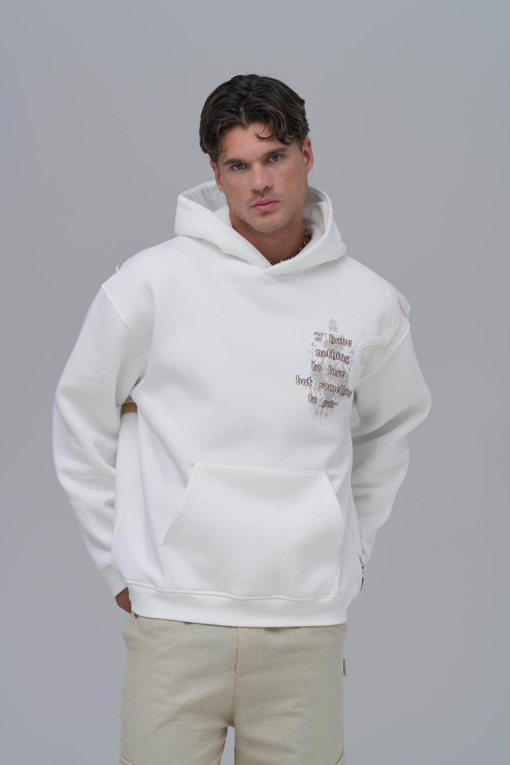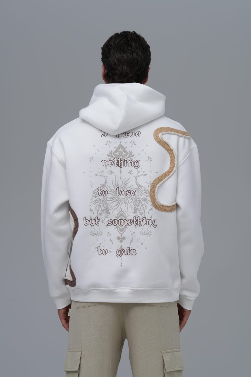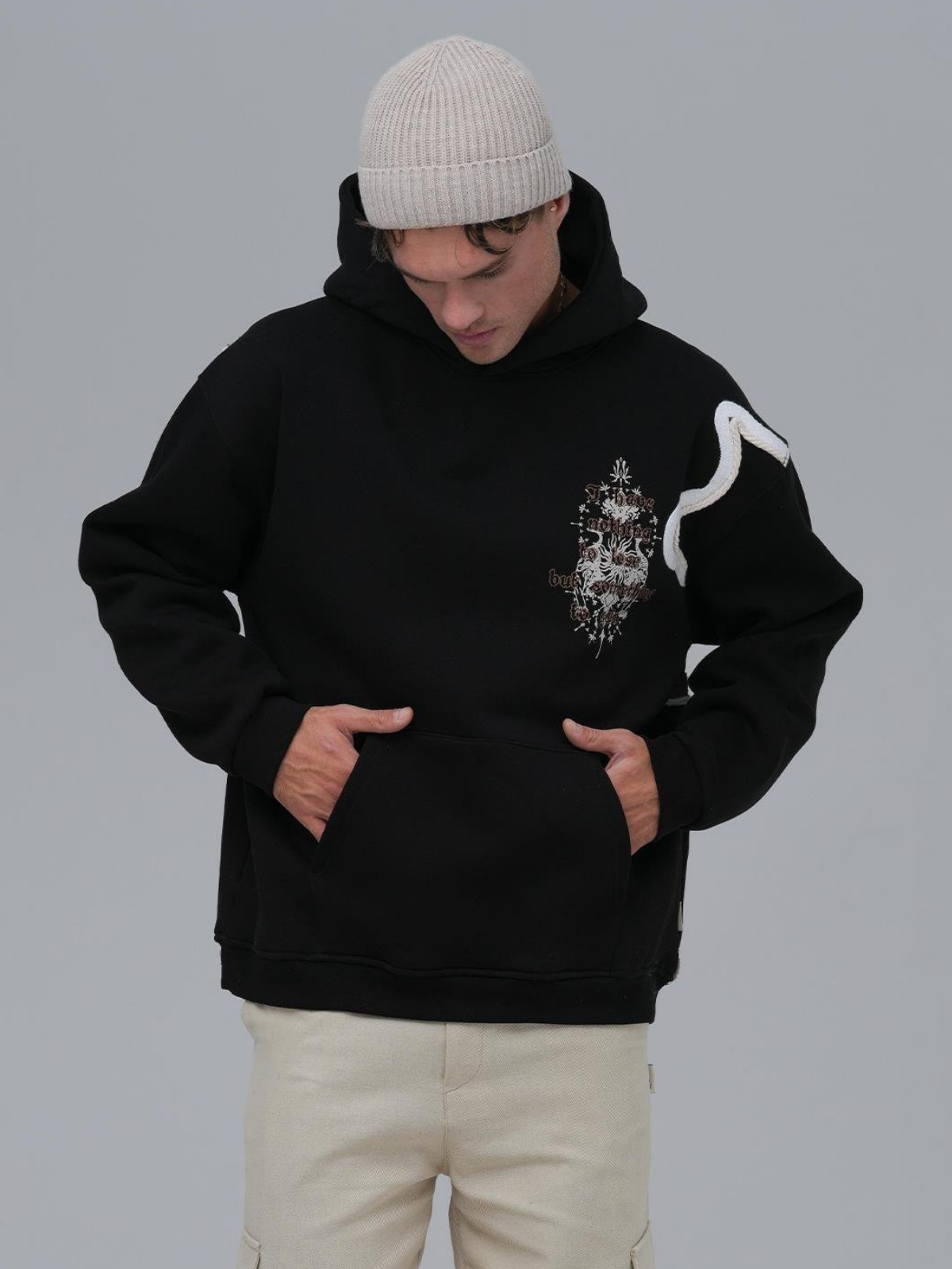 Yün İpli Aplikeli Oversize Ekru Sweatshirt 5002
