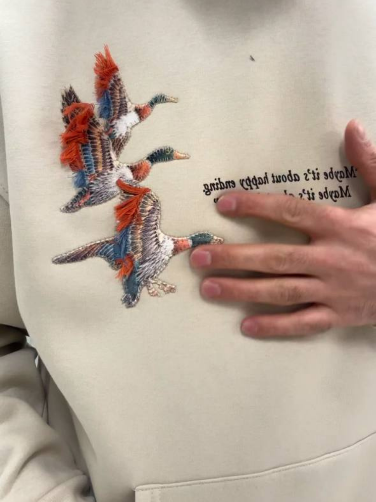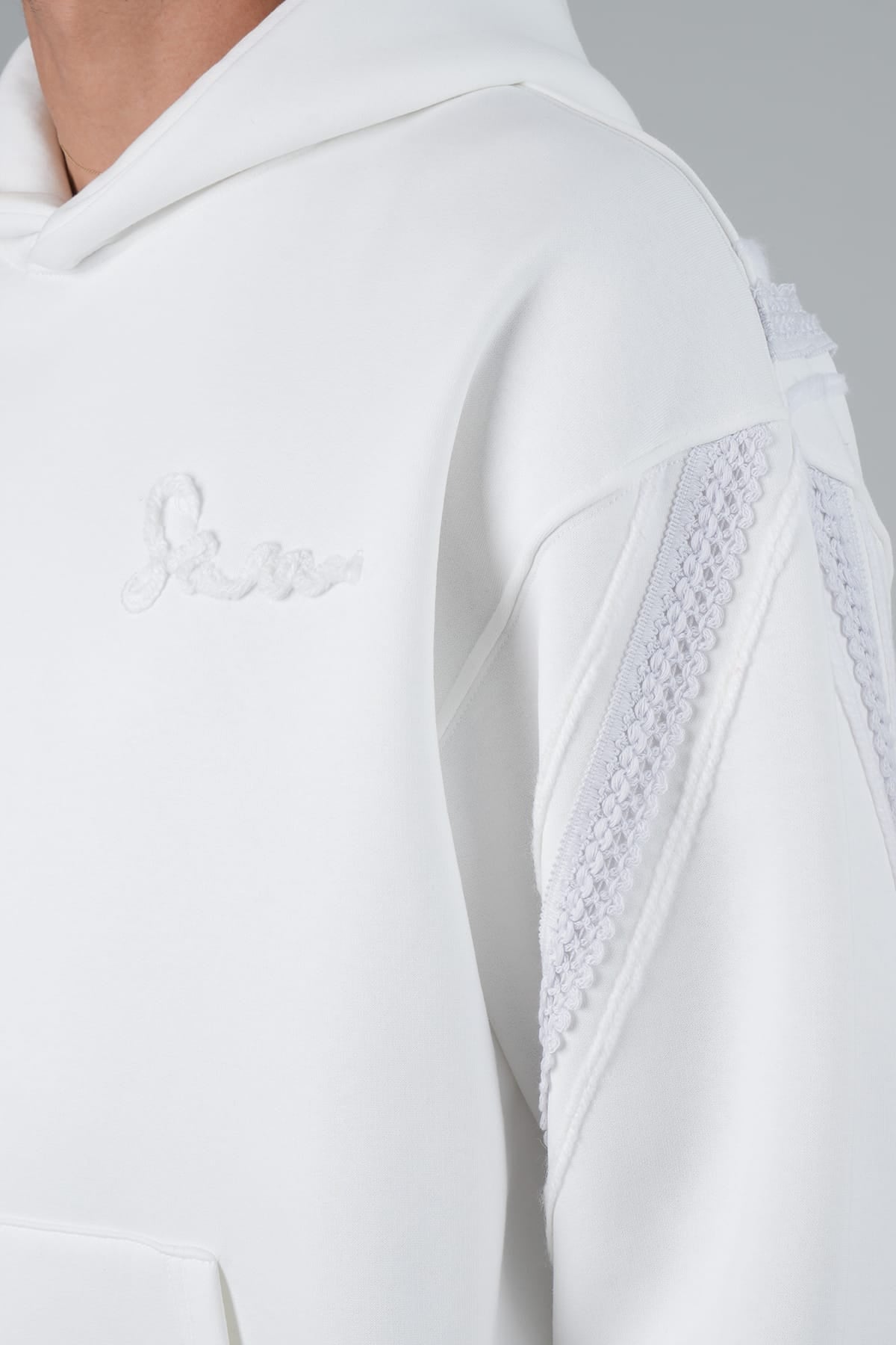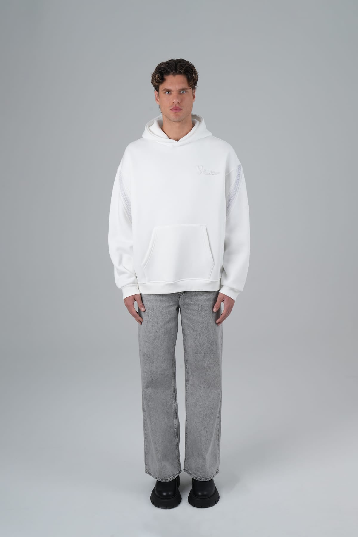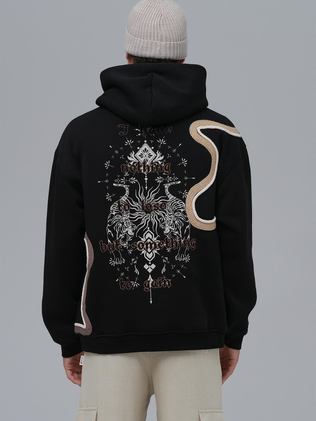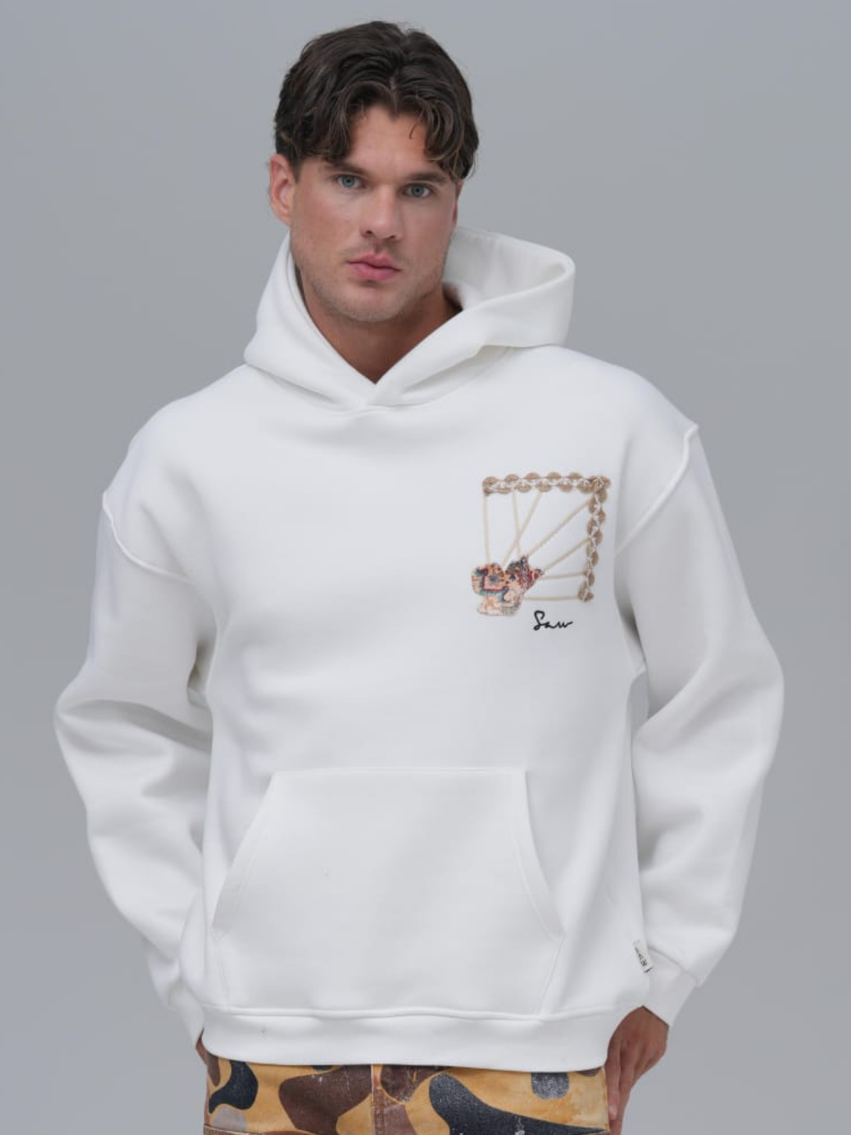 Yün İpli Aplikeli Oversize Ekru Sweatshirt 5002