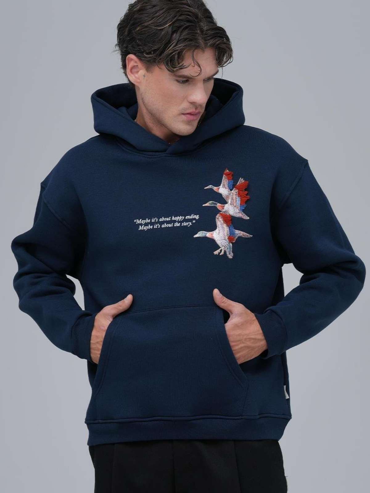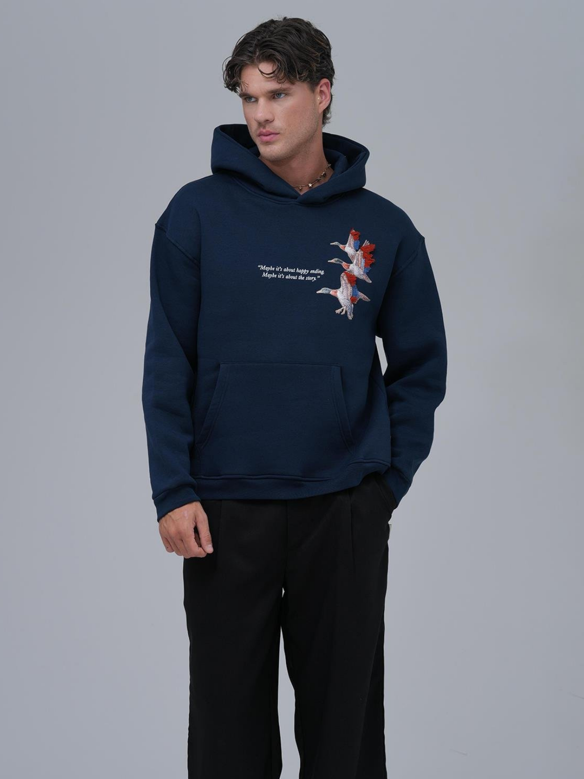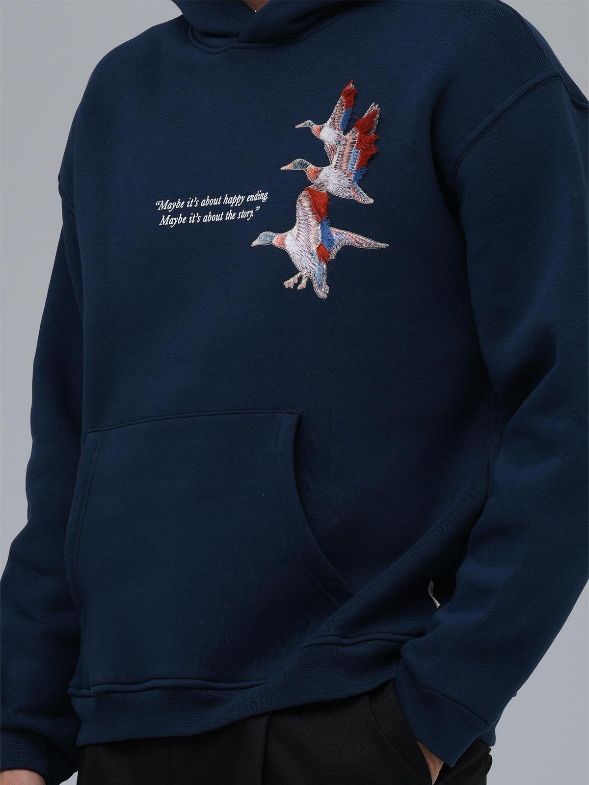 Püsküllü Kaz Aplike Oversize İndigo Sweatshirt 4996