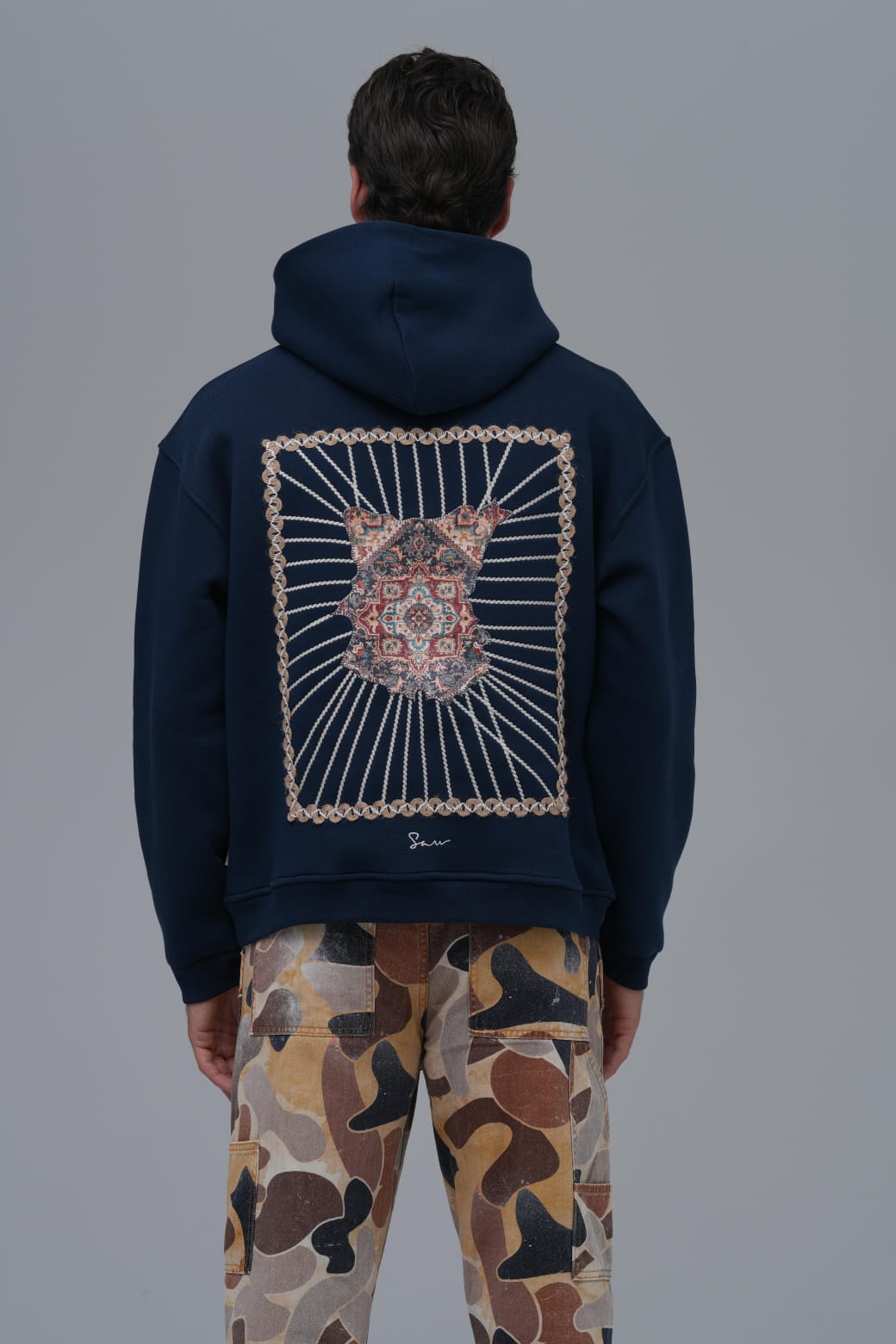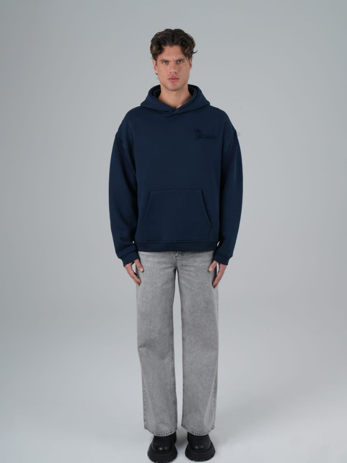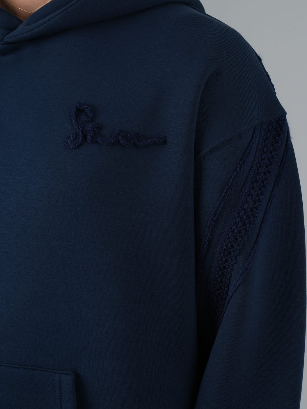Yün İpli Aplikeli Oversize Lacivert Sweatshirt 5002