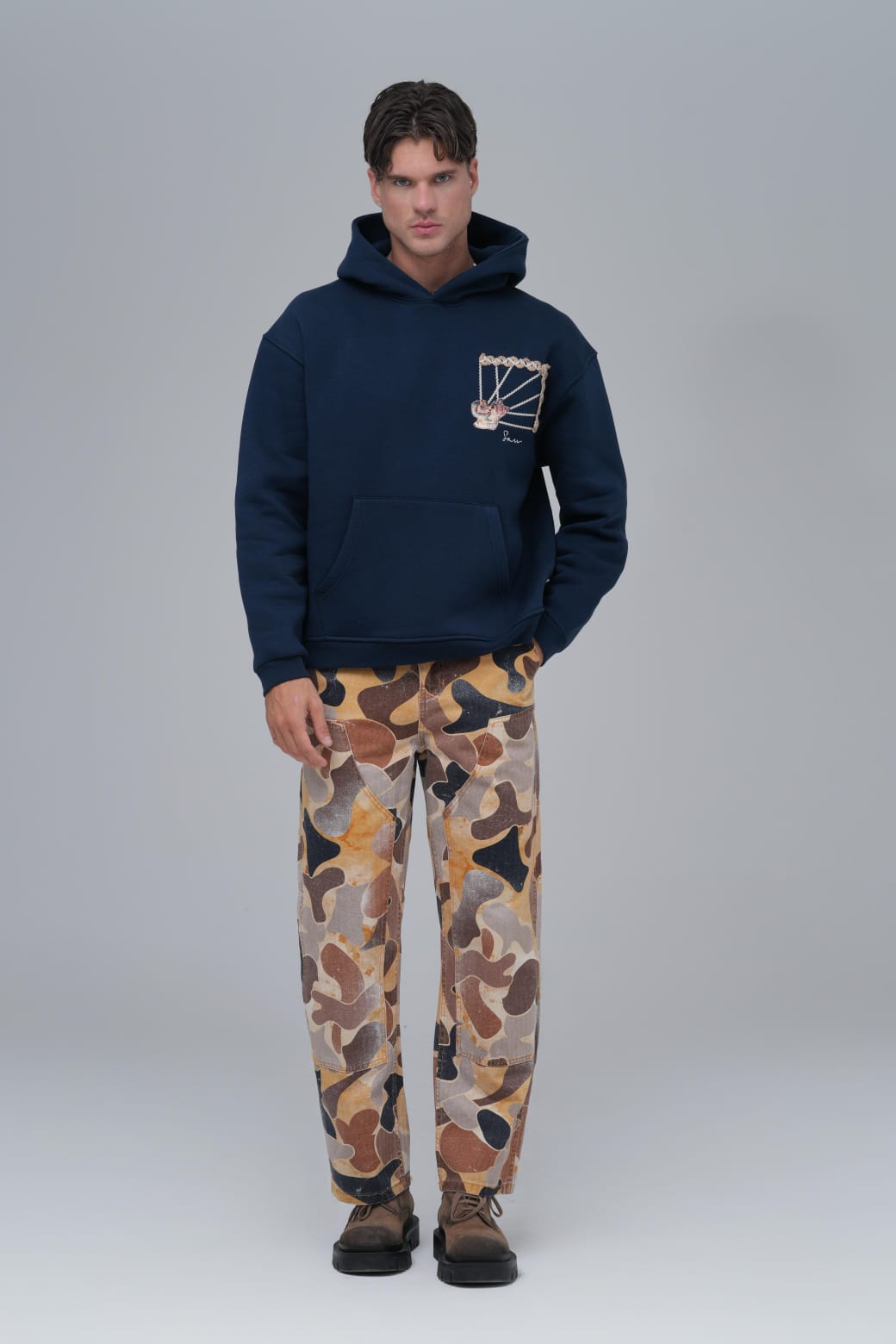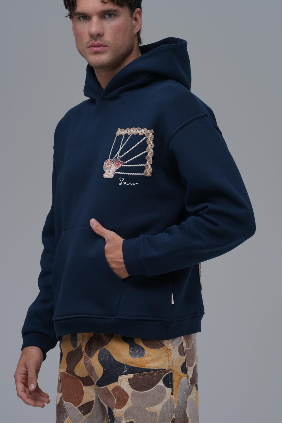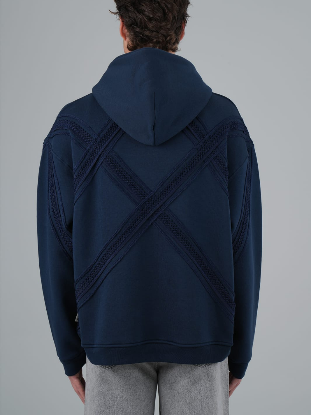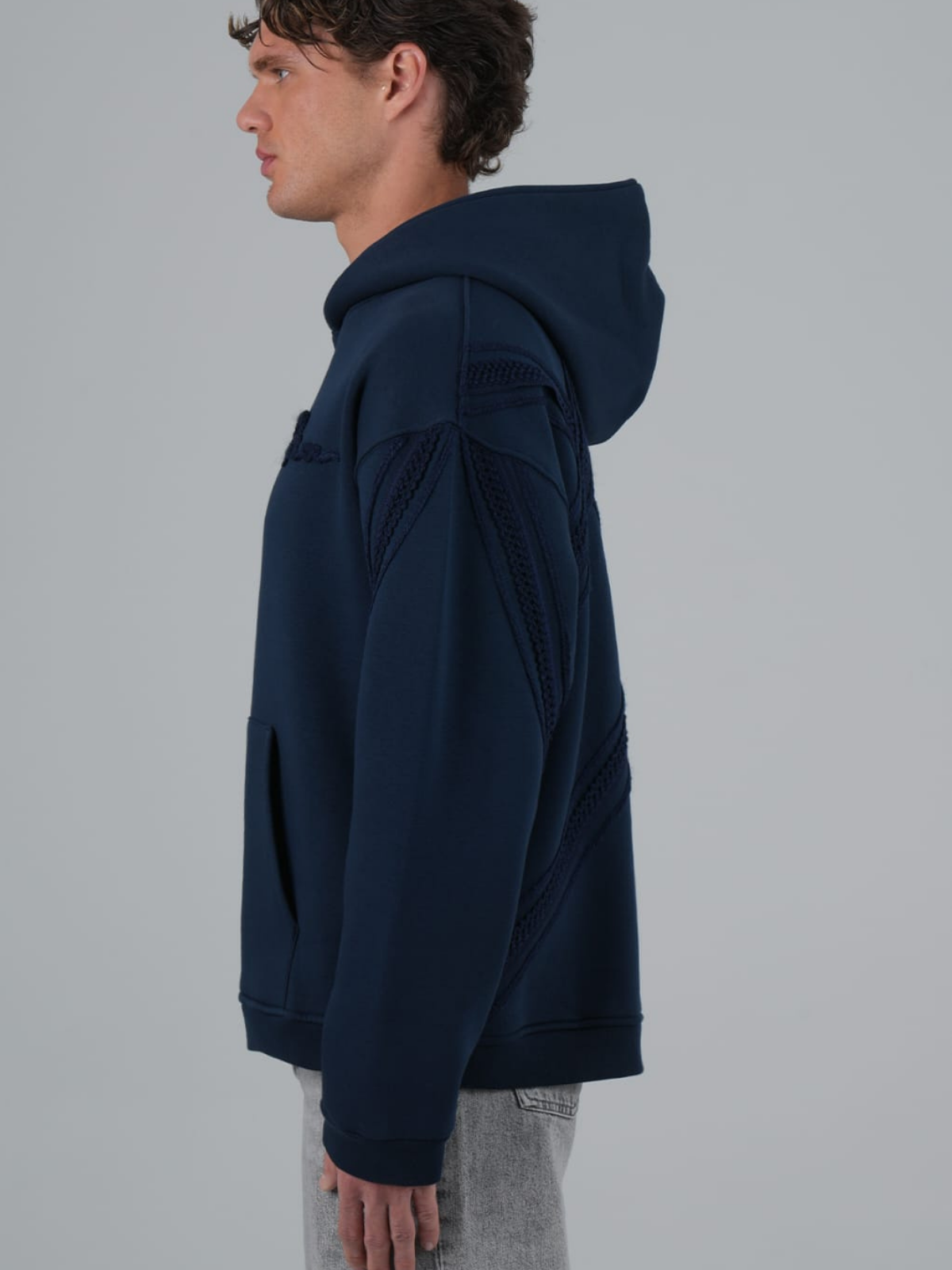 Yün İpli Aplikeli Oversize Lacivert Sweatshirt 5002