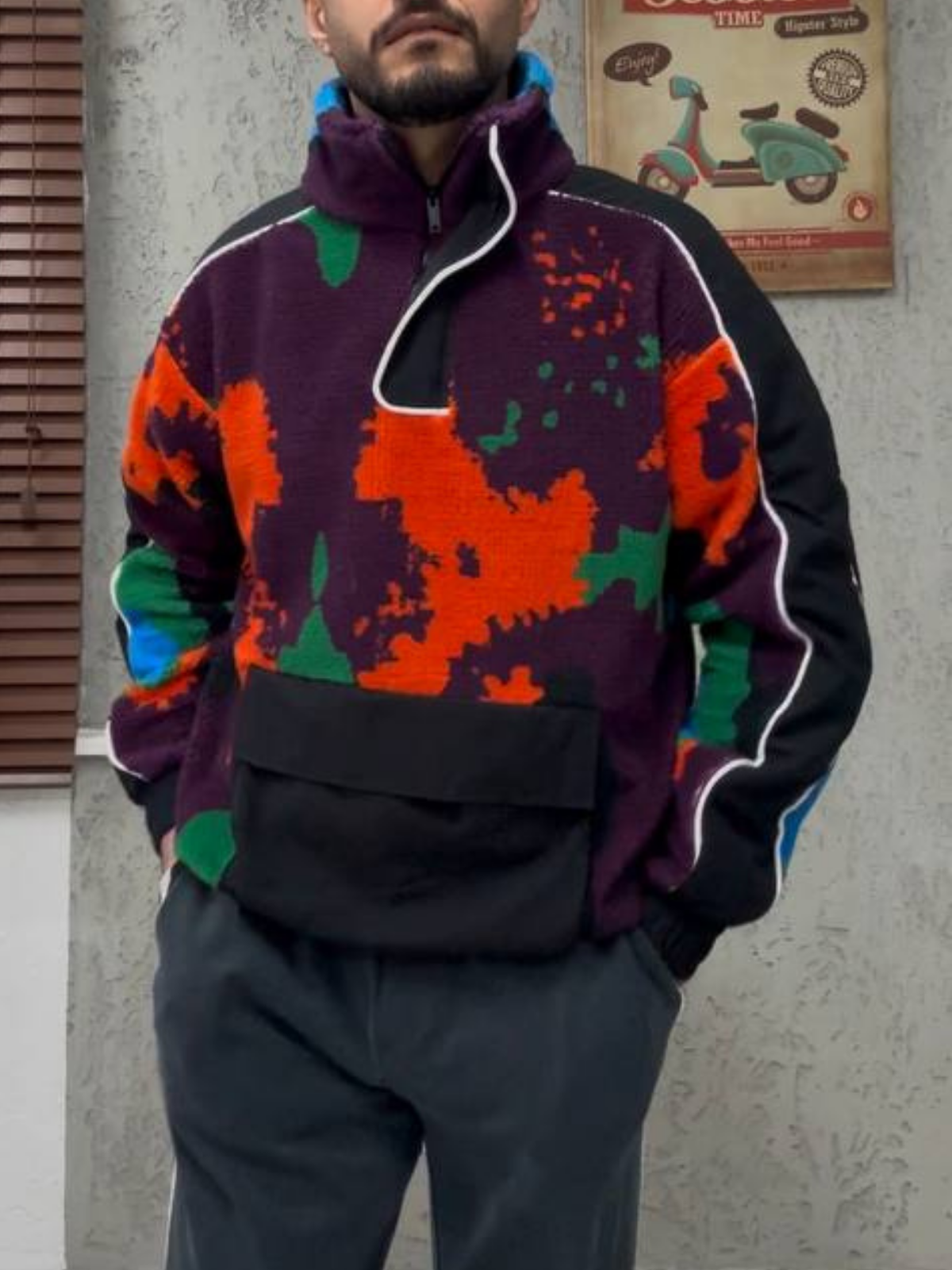 Halı Desenli Oversize Taş Sweatshirt 4978