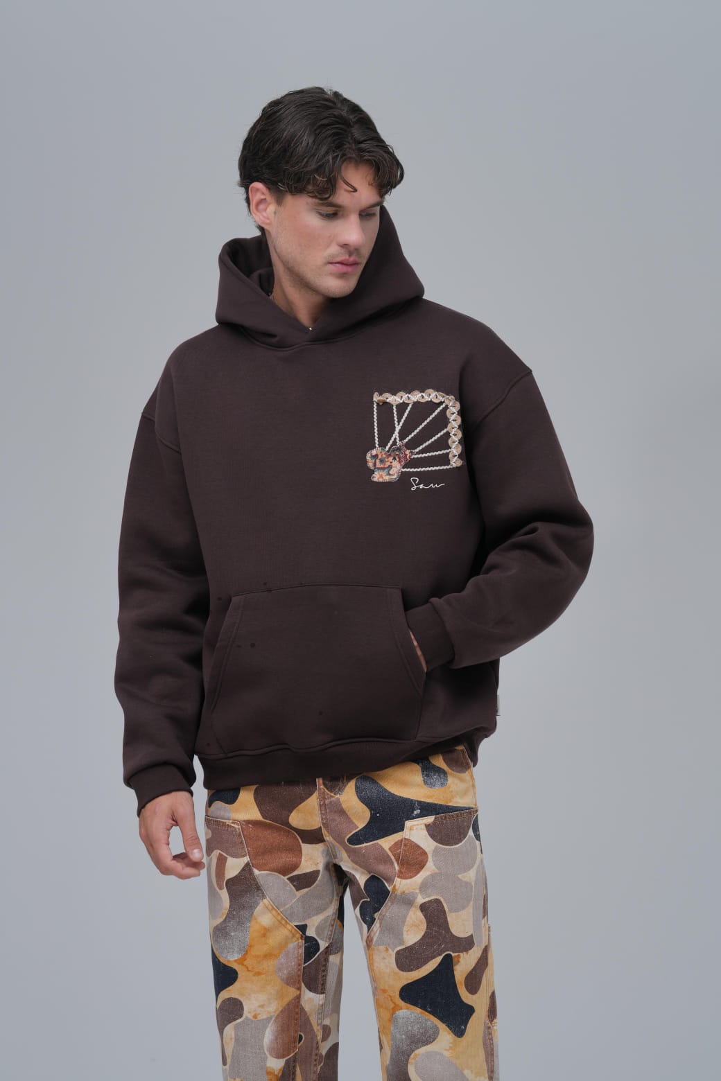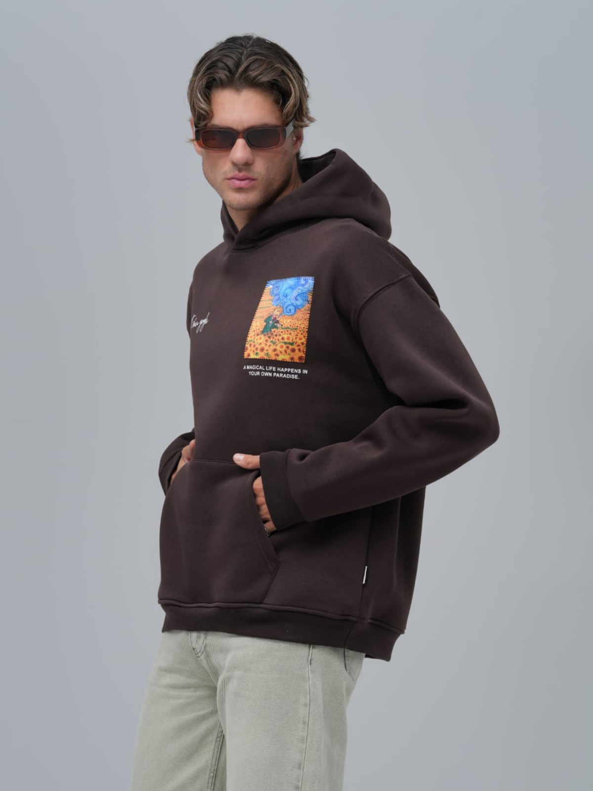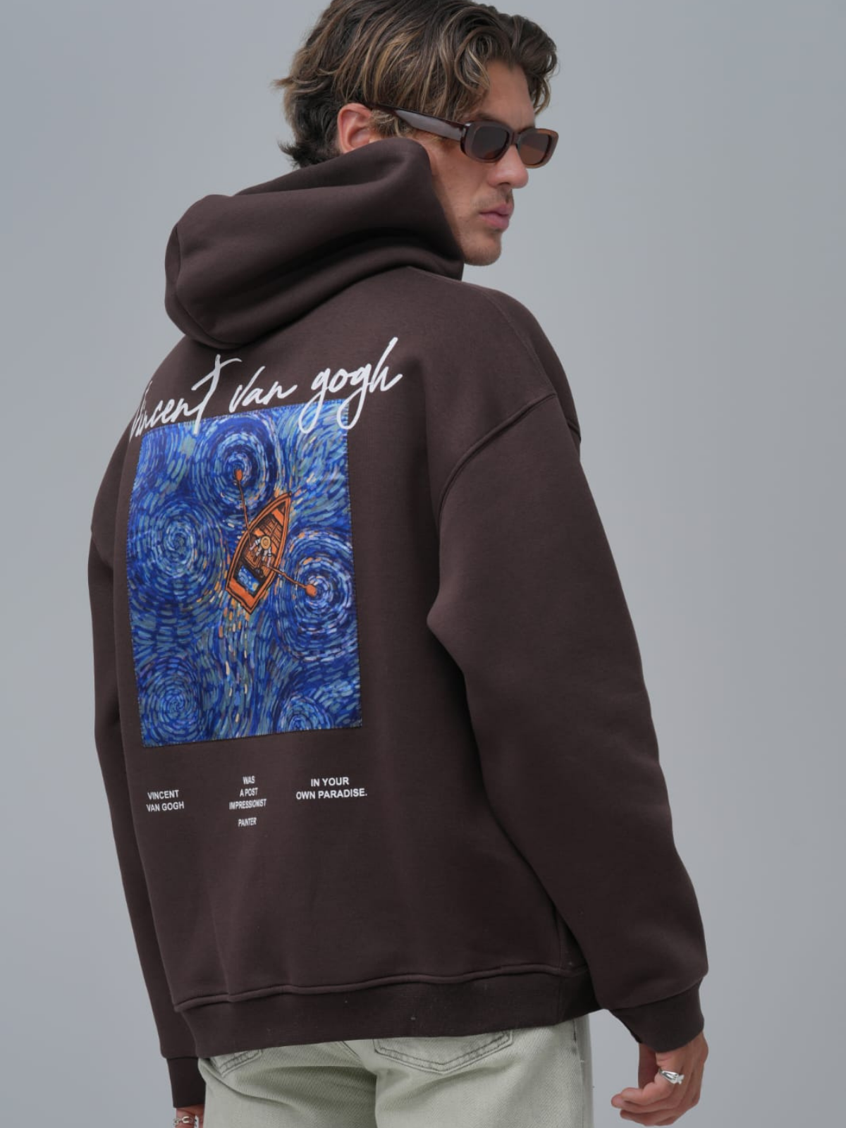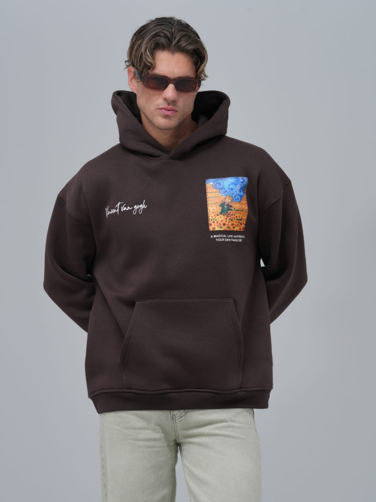 Sandal Baskılı Vincent Oversize Kahve Sweatshirt 4964