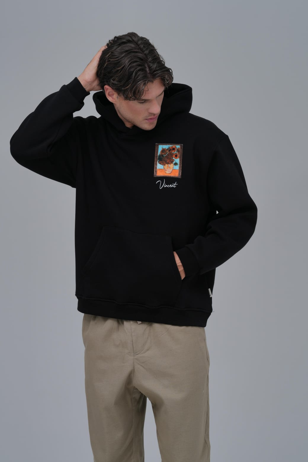 Petek Aplike Vincent Oversize Siyah Sweatshirt 5004